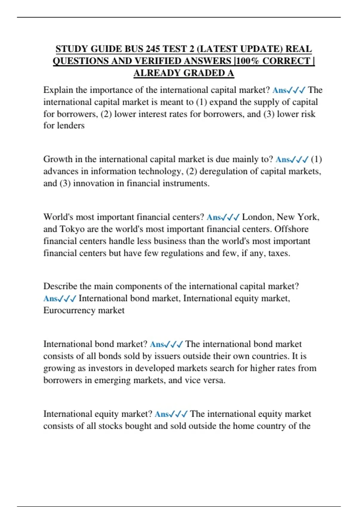 STUDY GUIDE BUS 245 TEST 2 (LATEST UPDATE) REAL QUESTIONS AND VERIFIED ANSWERS |100% CORRECT | ALREADY GRADED A
