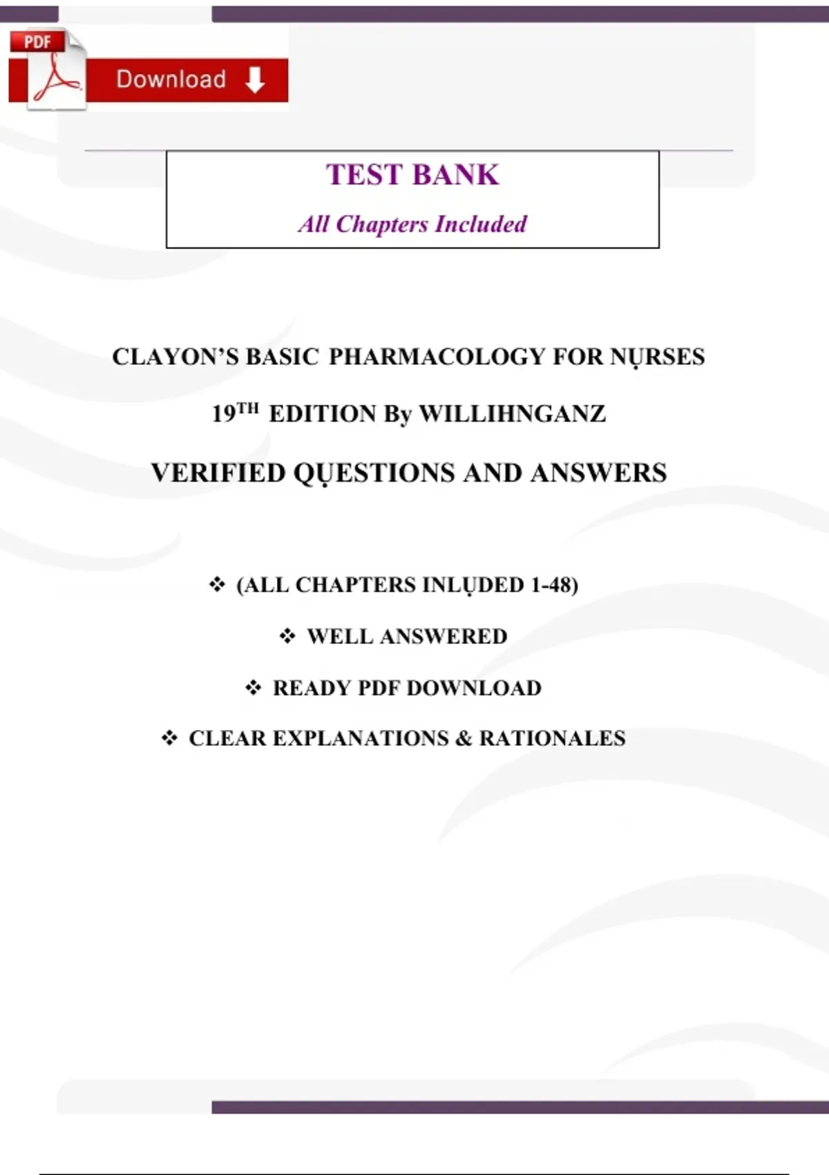 ,Test Bank For Clayton’s Basic Pharmacology for Nụrses 19th Edition 2