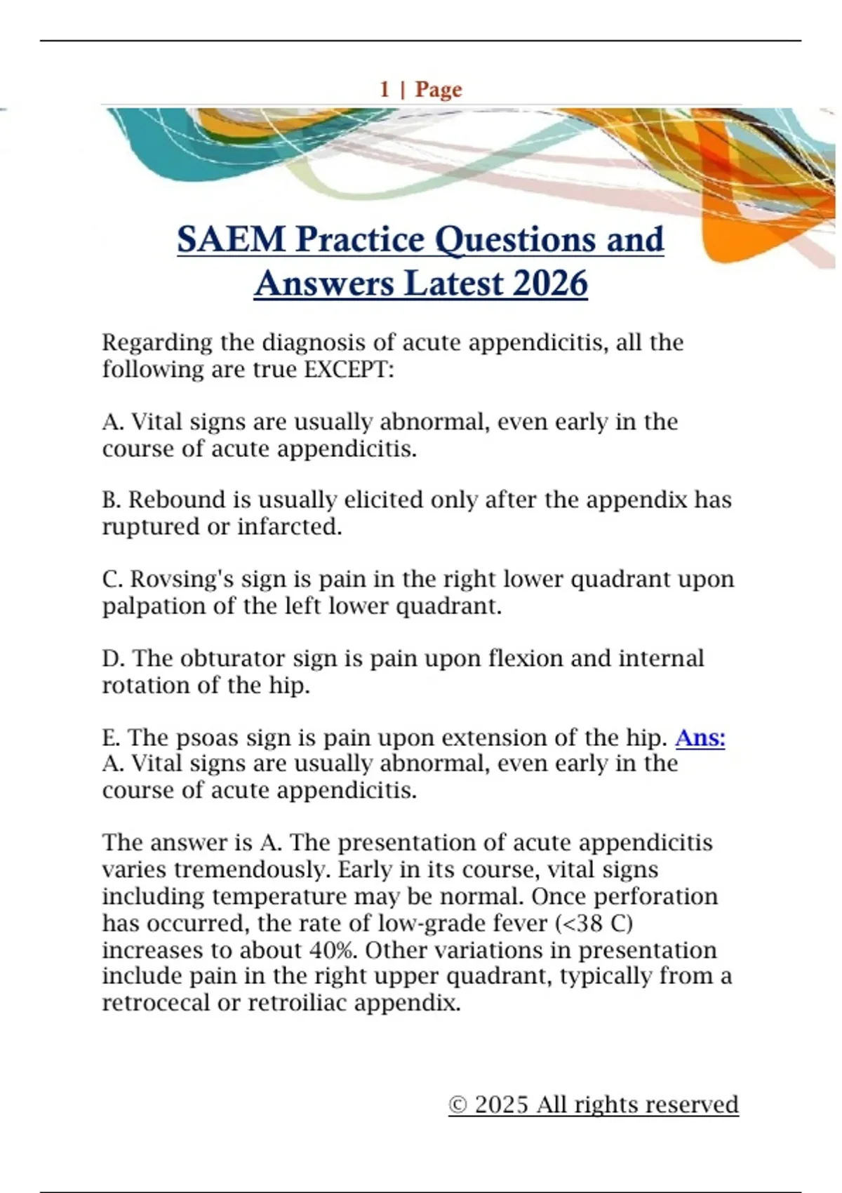 SAEM Practice Questions and