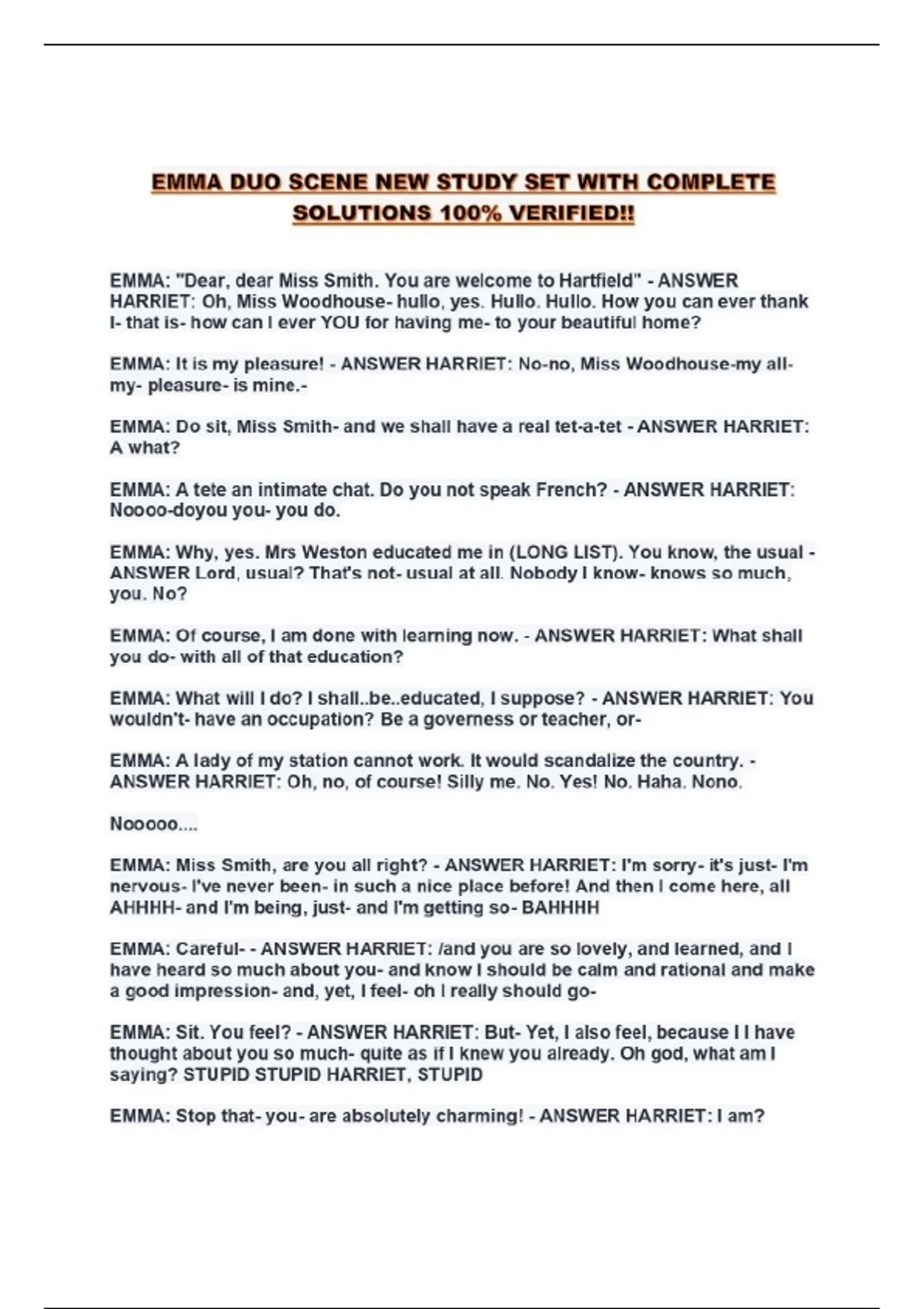 EMMA DUO SCENE NEW STUDY SET WITH COMPLETE SOLUTIONS 100% VERIFIED!!...