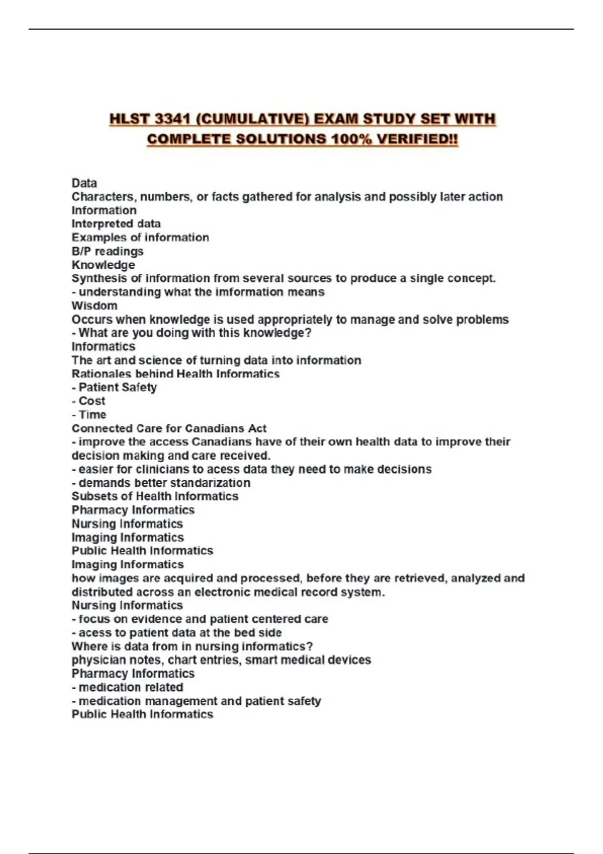 HLST 3341 (CUMULATIVE) EXAM STUDY SET WITH COMPLETE SOLUTIONS 100% VERIFIED!!...