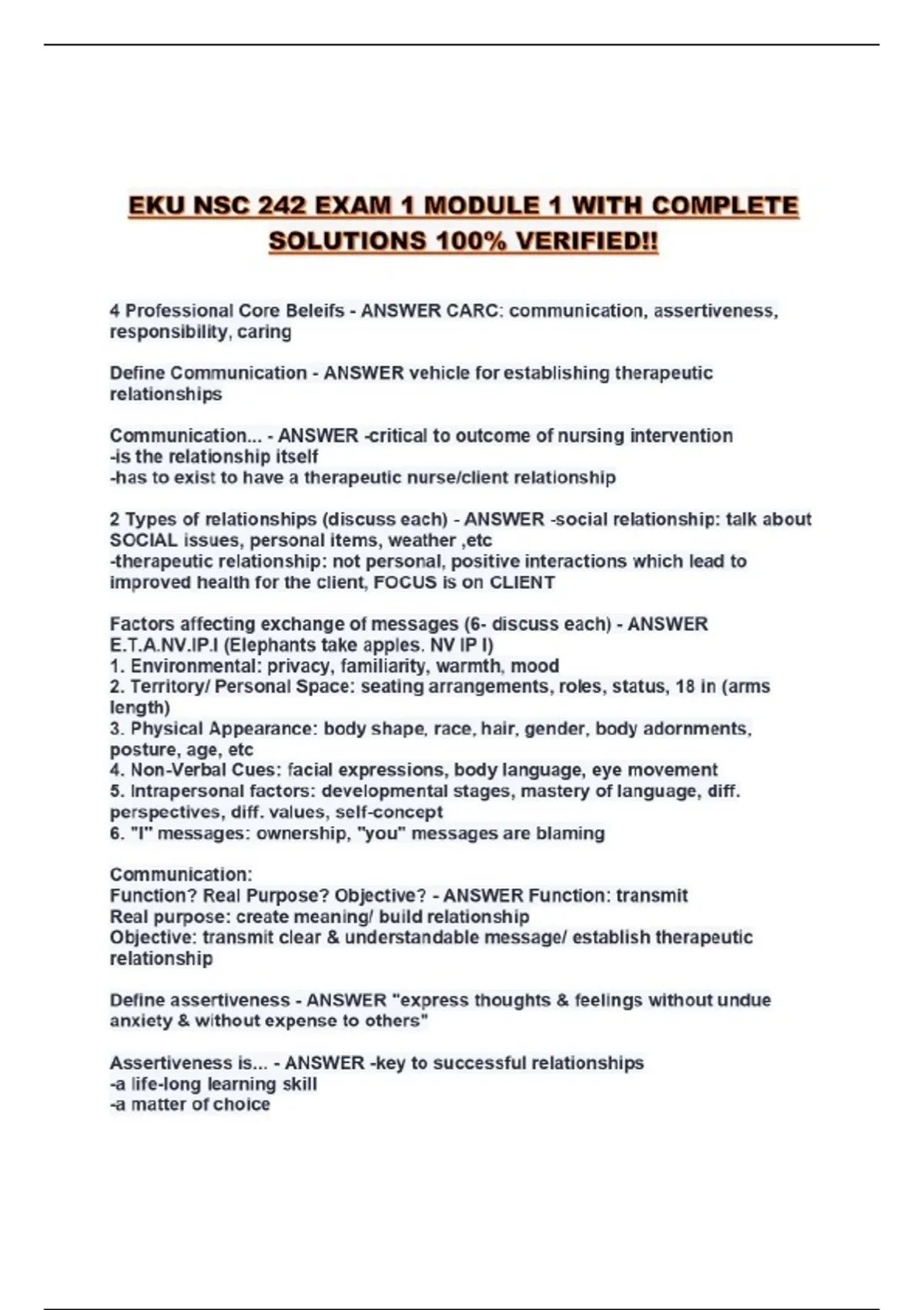 EKU NSC 242 EXAM 1 MODULE 1 WITH COMPLETE SOLUTIONS 100% VERIFIED!!...