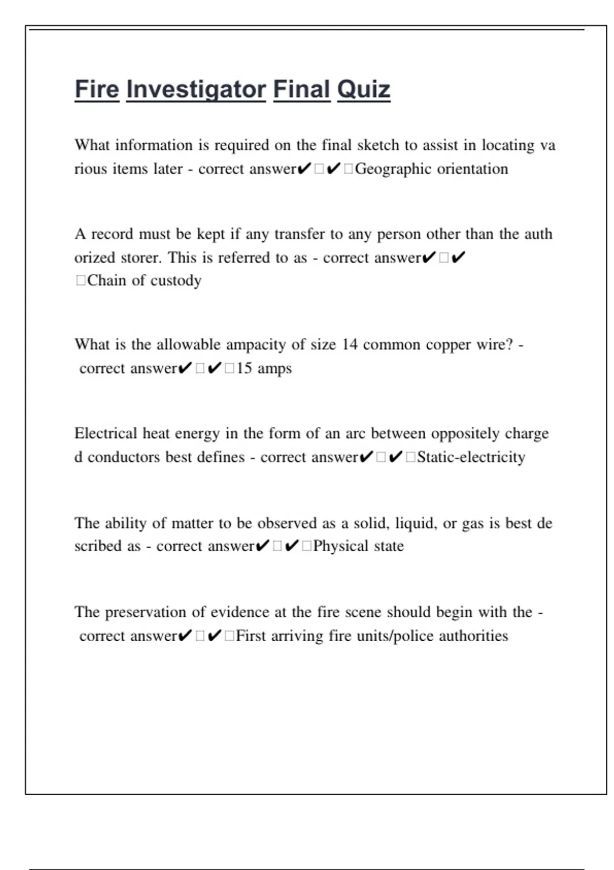 Fire Investigator Final Quiz with solutions