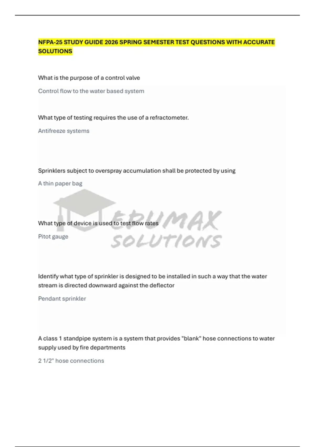 NFPA-25 STUDY GUIDE 2026 SPRING SEMESTER TEST QUESTIONS WITH ACCURATE