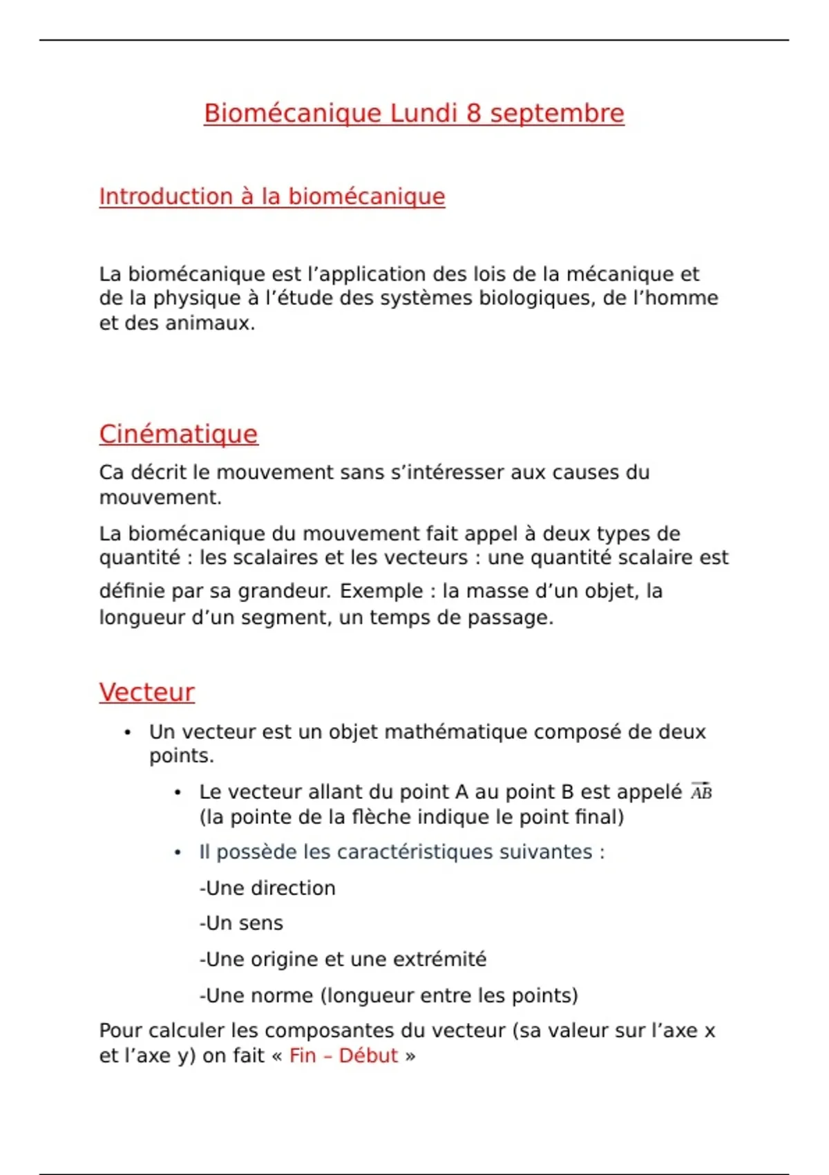 Biomécanique Lundi 8 septembre