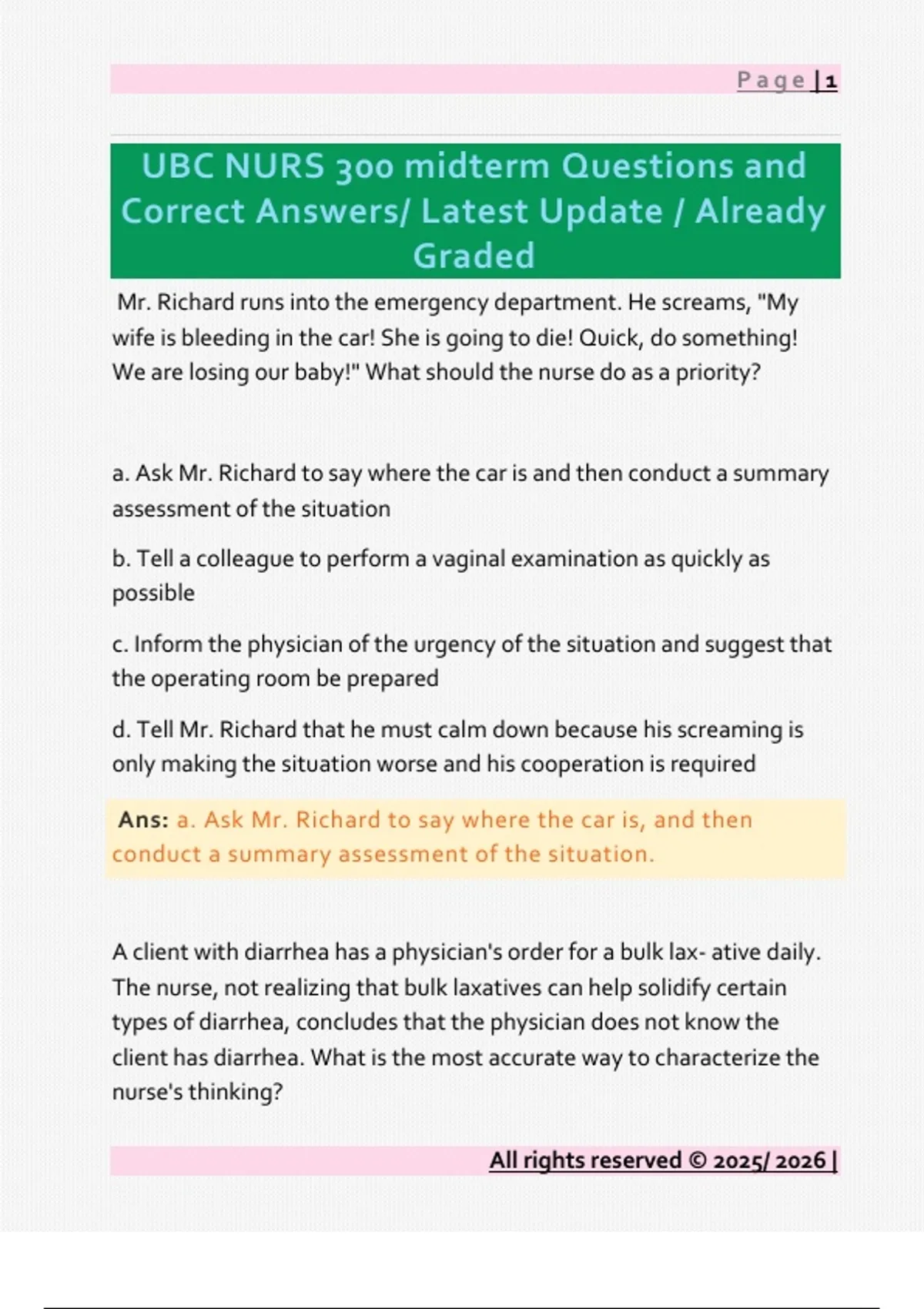 UBC NURS 300 midterm Questions and Correct Answers/ Latest Update / Already Graded