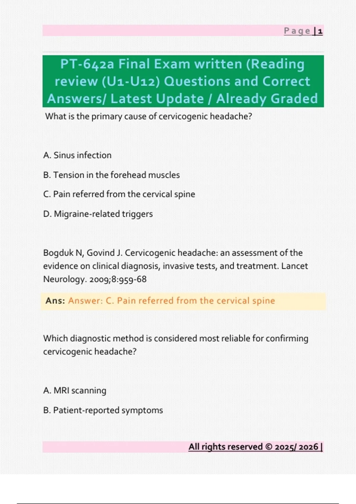 Ans: Answer: C. Pain originating from the neck and radiating to