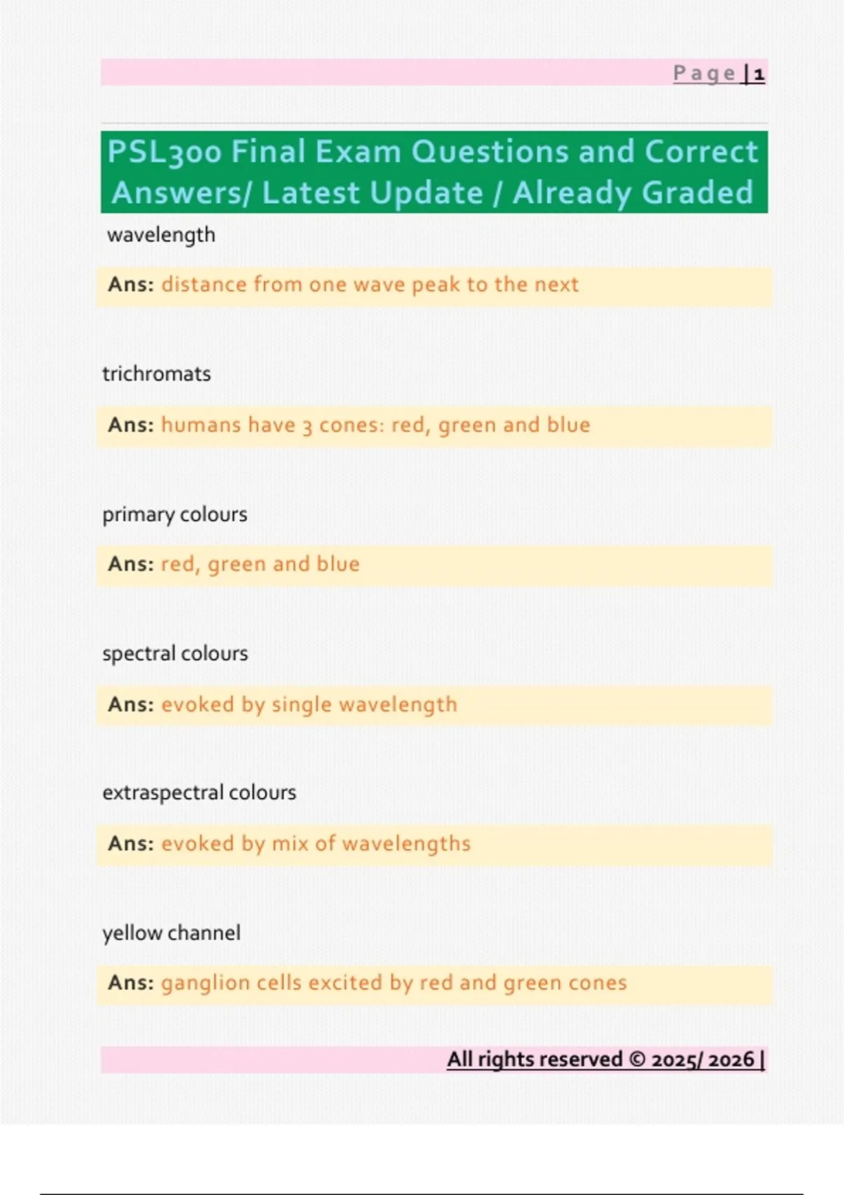 PSL300 Final Exam Questions and Correct