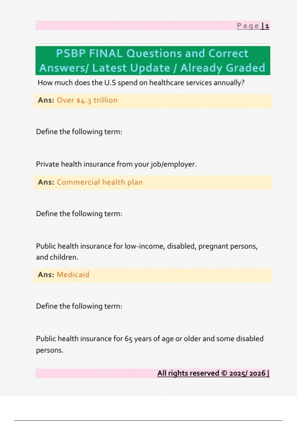 PSBP FINAL Questions and Correct Answers/ Latest Update / Already Graded