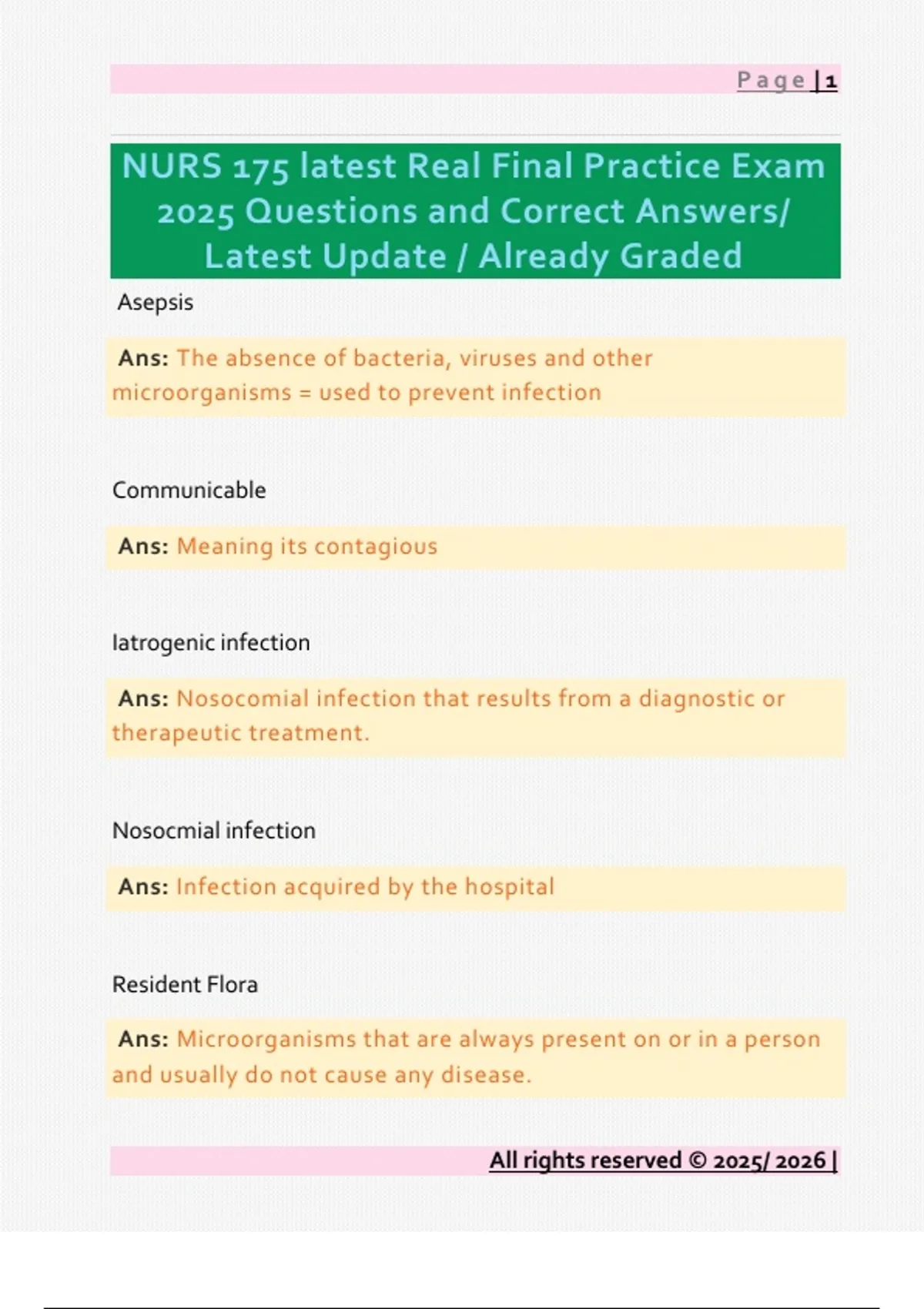 NURS 175 latest Real Final Practice Exam