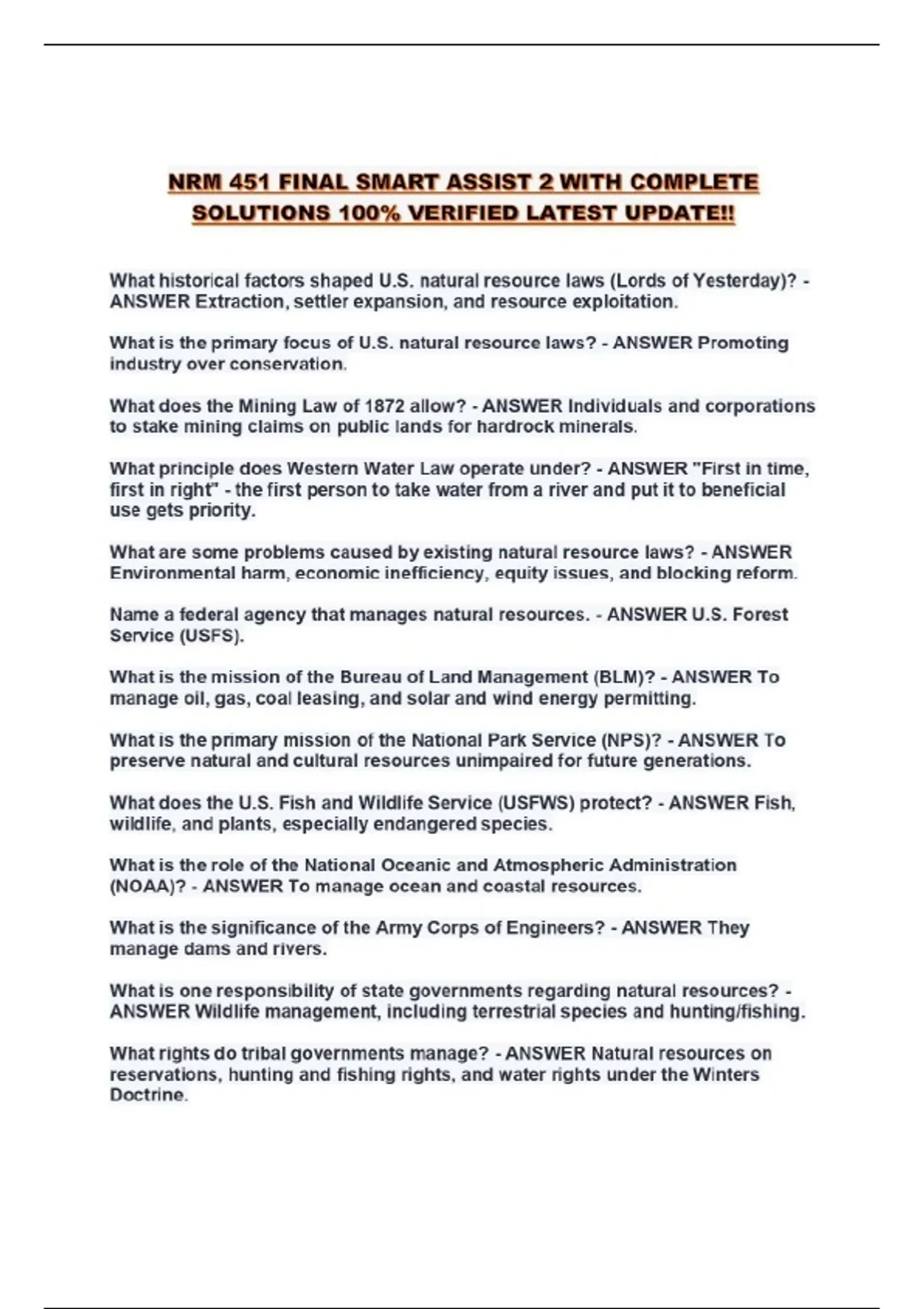 NRM 451 FINAL SMART ASSIST 2 WITH COMPLETE SOLUTIONS 100% VERIFIED LATEST UPDATE!!...