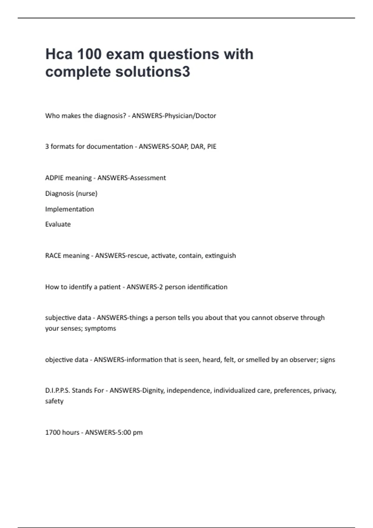 Hca 100 exam questions with