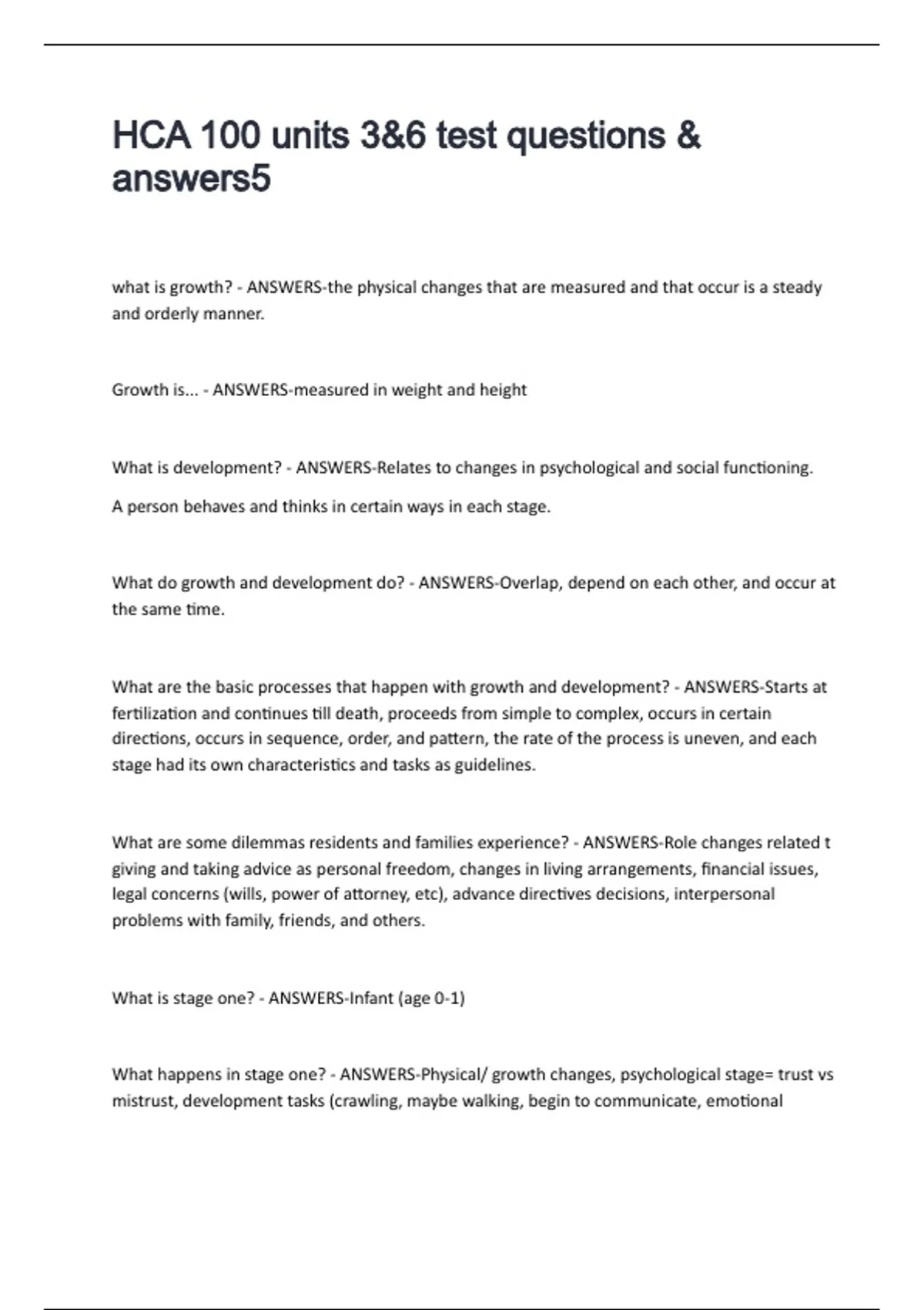 What happens in stage one? - ANSWERS-Physical/ growth changes, psychological stage= trust vs