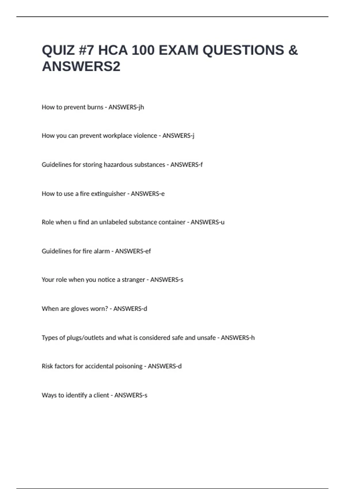 QUIZ -7 HCA 100 EXAM QUESTIONS & ANSWERS