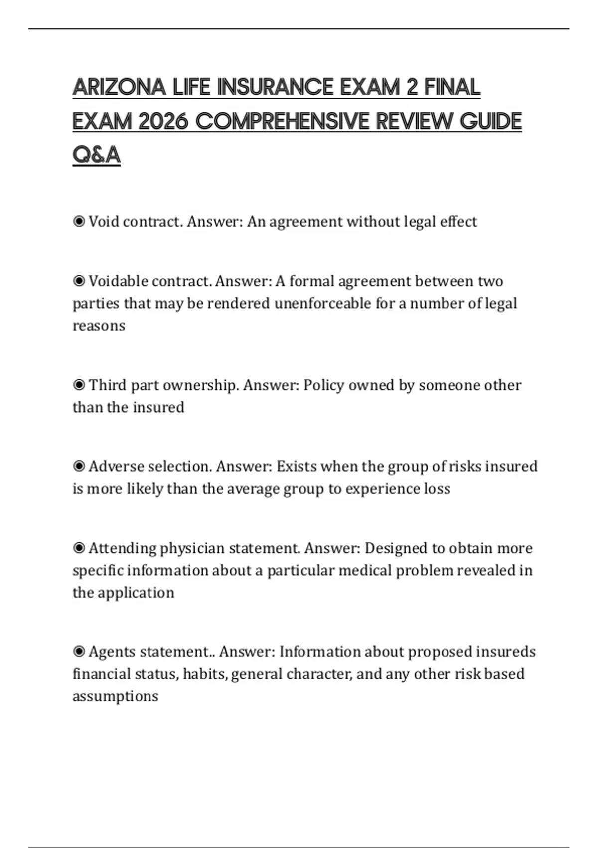 ARIZONA LIFE INSURANCE EXAM 2 FINAL EXAM 2026 COMPREHENSIVE REVIEW GUIDE Q&A