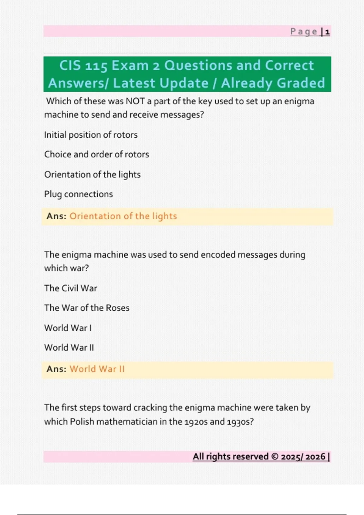 CIS 115 Exam 2 Questions and Correct Answers/ Latest Update / Already Graded