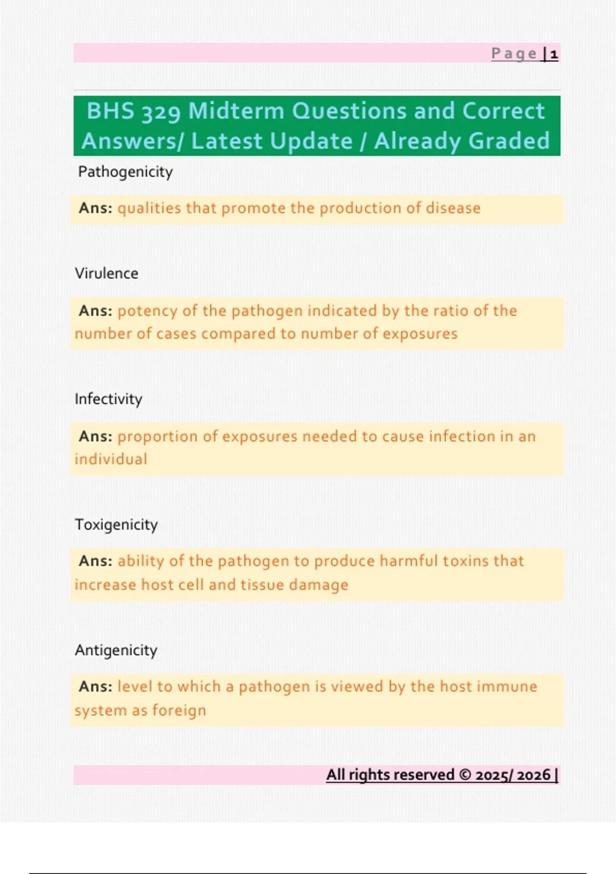 BHS 329 Midterm Questions and Correct