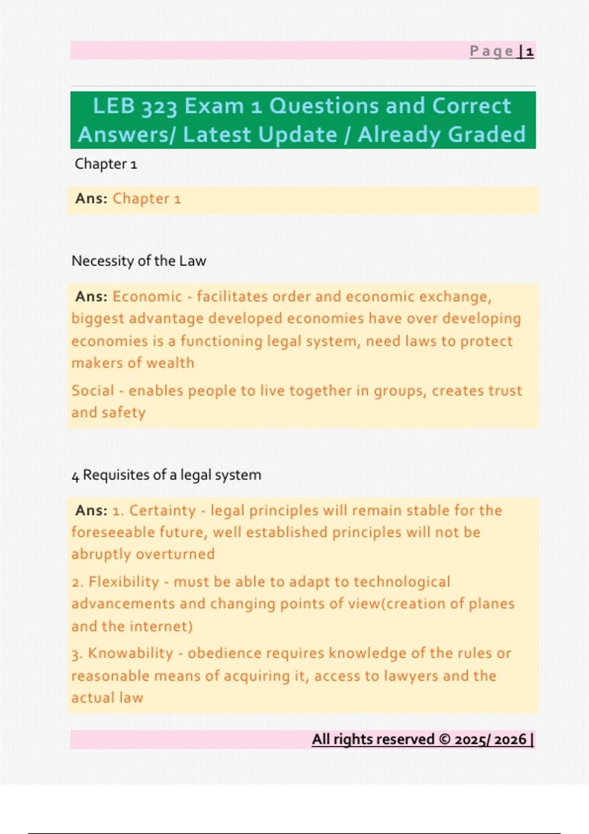 LEB 323 Exam 1 Questions and Correct