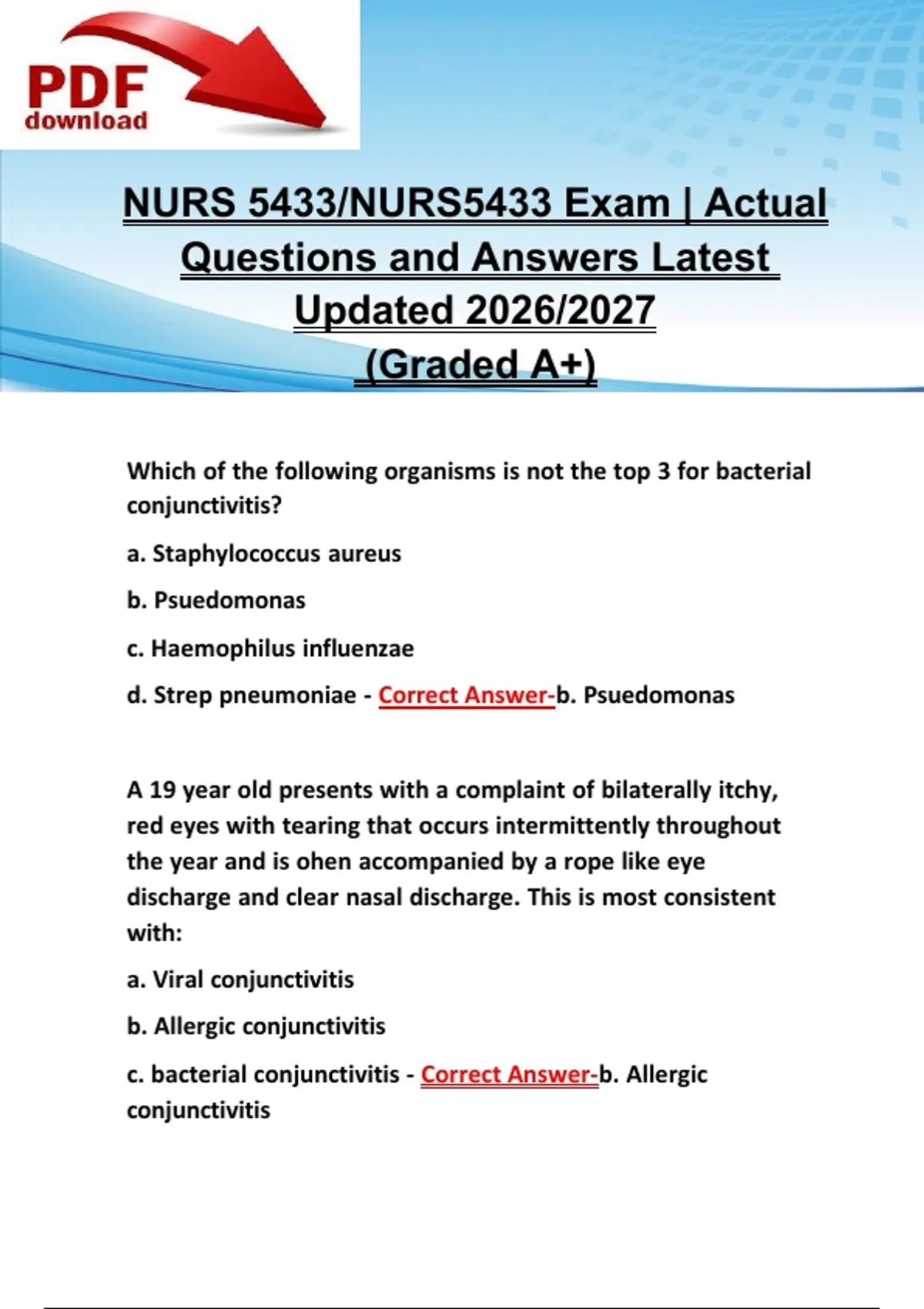 c. bacterial conjunctivitis - Correct Answer-b. Allergic