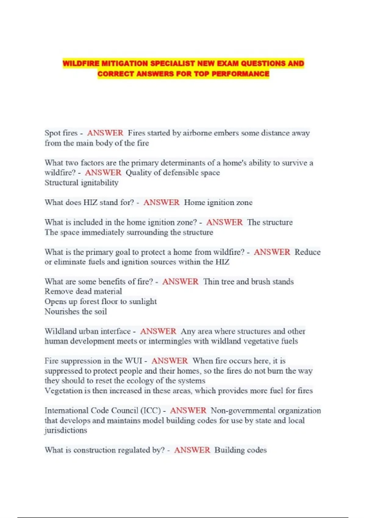 WILDFIRE MITIGATION SPECIALIST NEW EXAM QUESTIONS AND CORRECT ANSWERS FOR TOP PERFORMANCE...