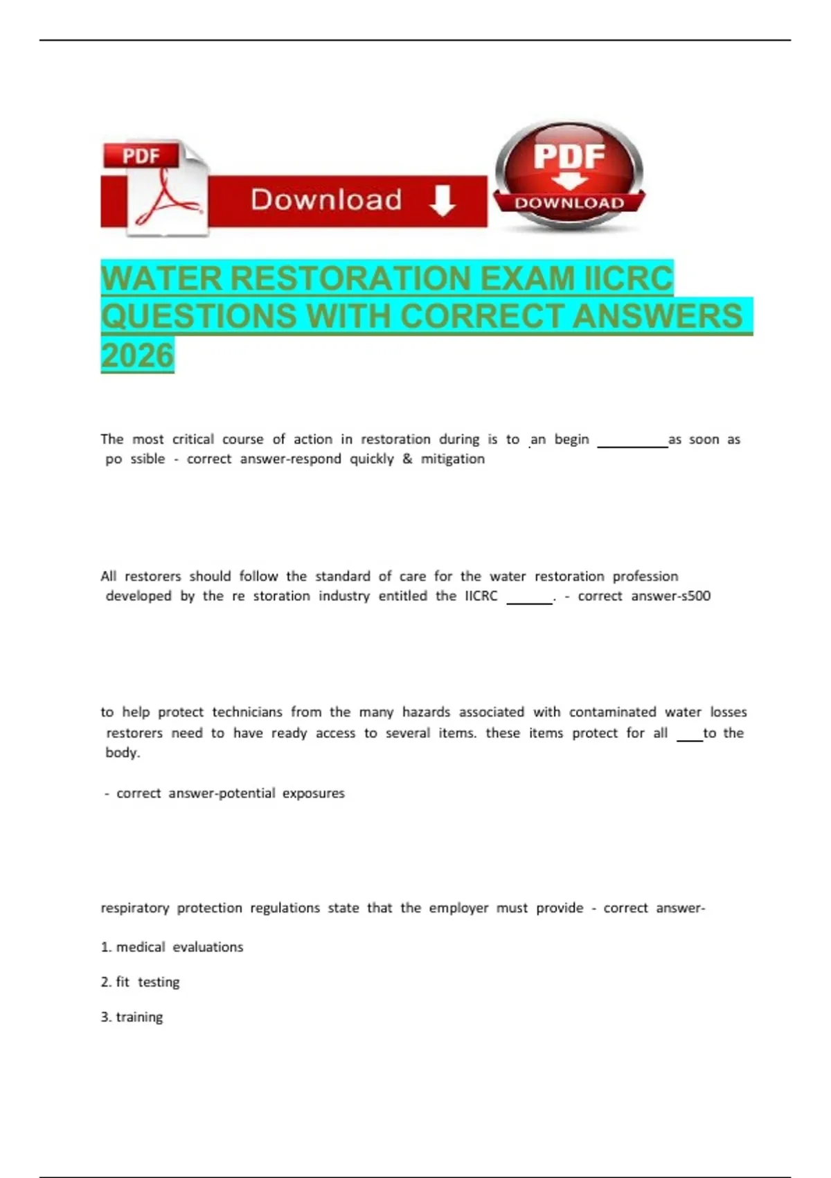 WATER RESTORATION EXAM IICRC QUESTIONS WITH CORRECT ANSWERS 2026