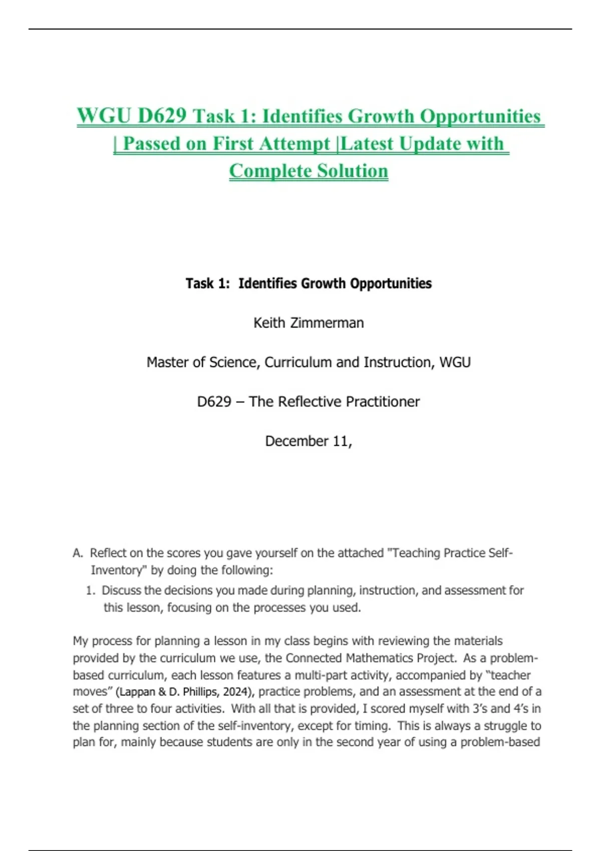 WGU D629 Task 1: Identifies Growth Opportunities | Passed on First Attempt |Latest Update with Complete Solution
