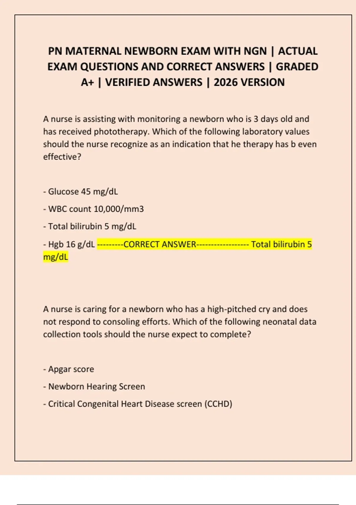 EXAM QUESTIONS AND CORRECT ANSWERS | GRADED