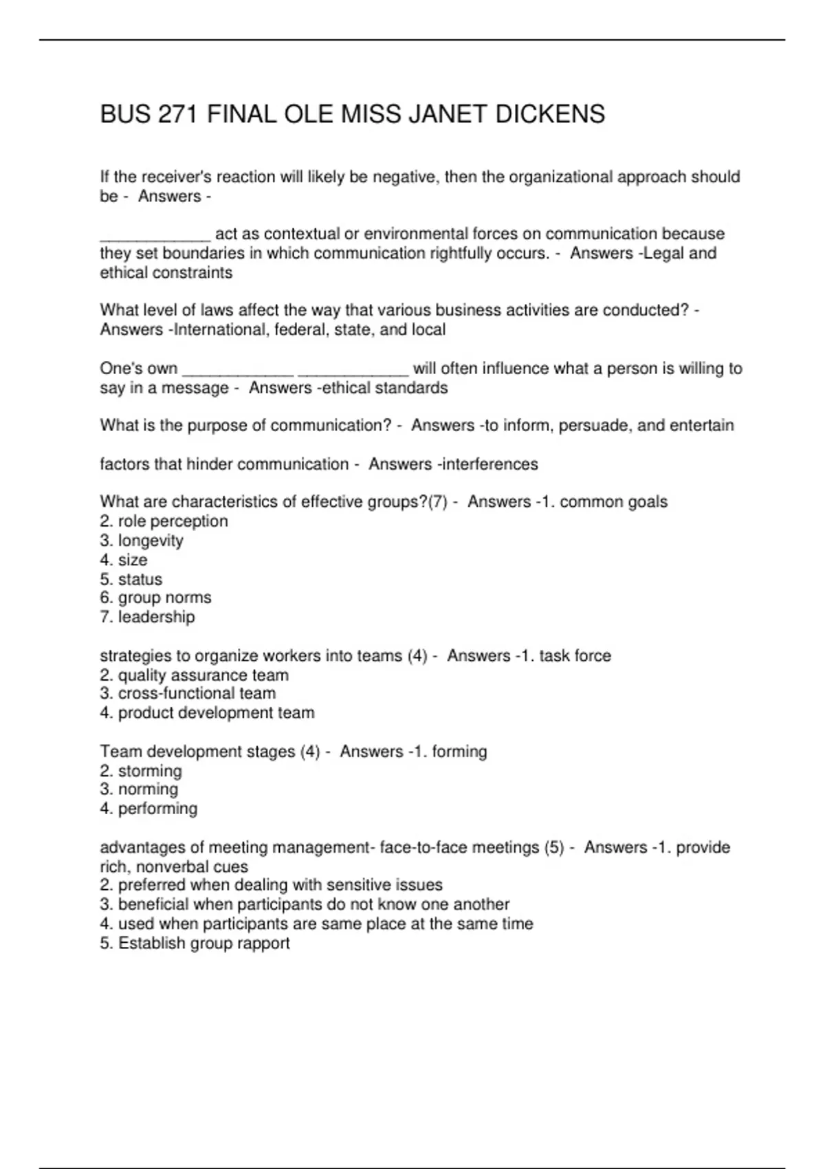 BUS 271 FINAL OLE MISS JANET DICKENS