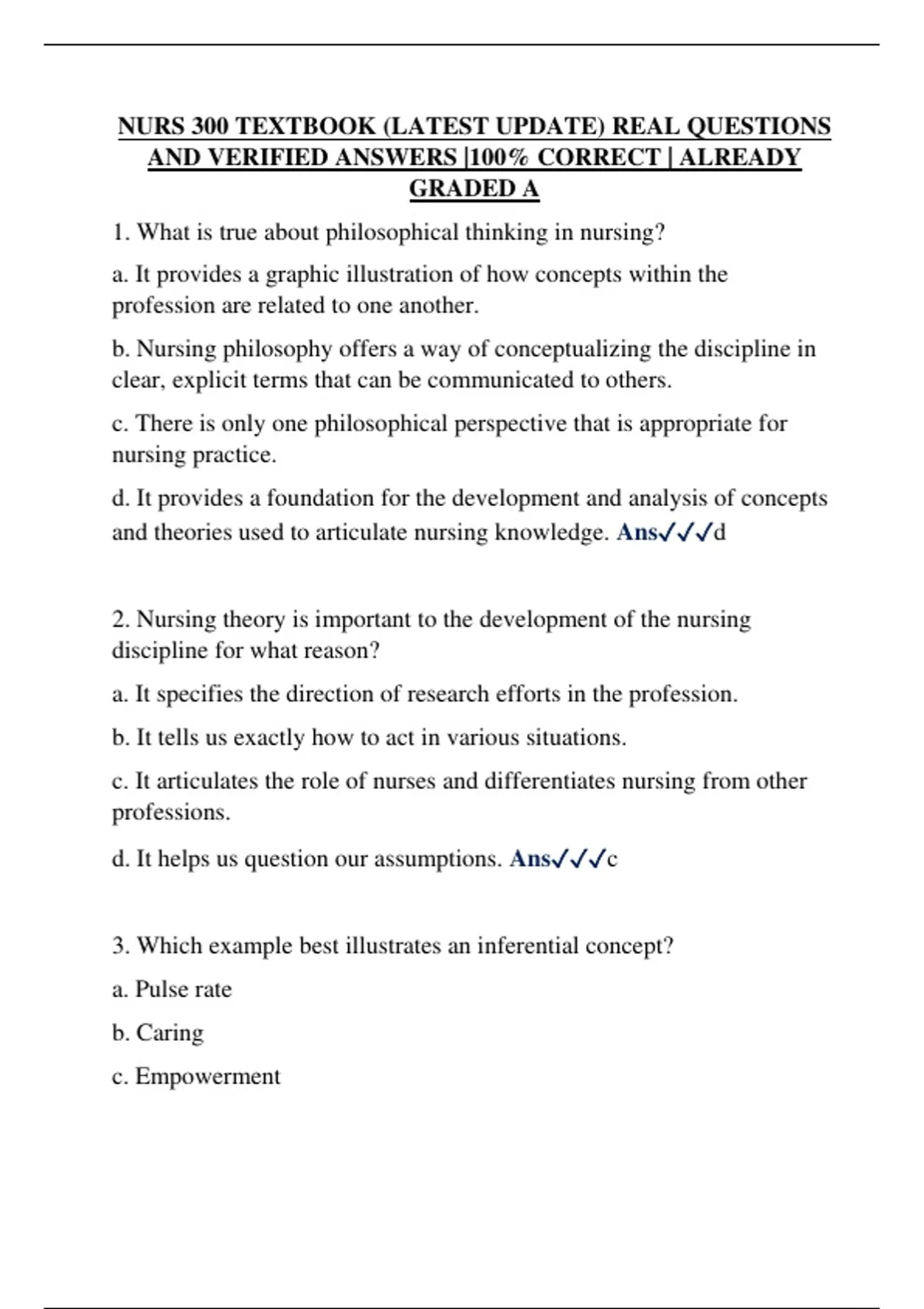 NURS 300 TEXTBOOK (LATEST UPDATE) REAL QUESTIONS
