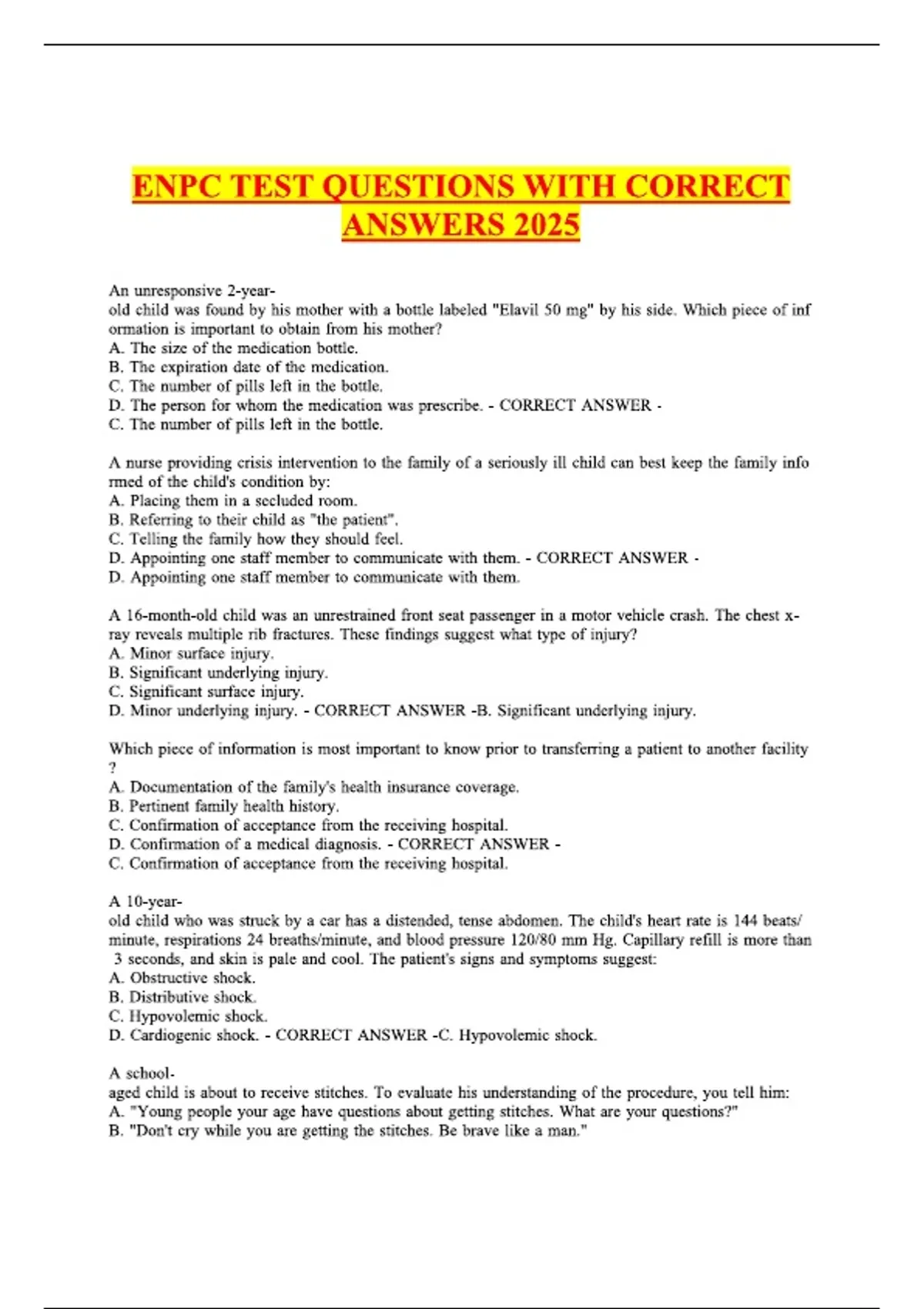 ENPC TEST QUESTIONS WITH CORRECT ANSWERS