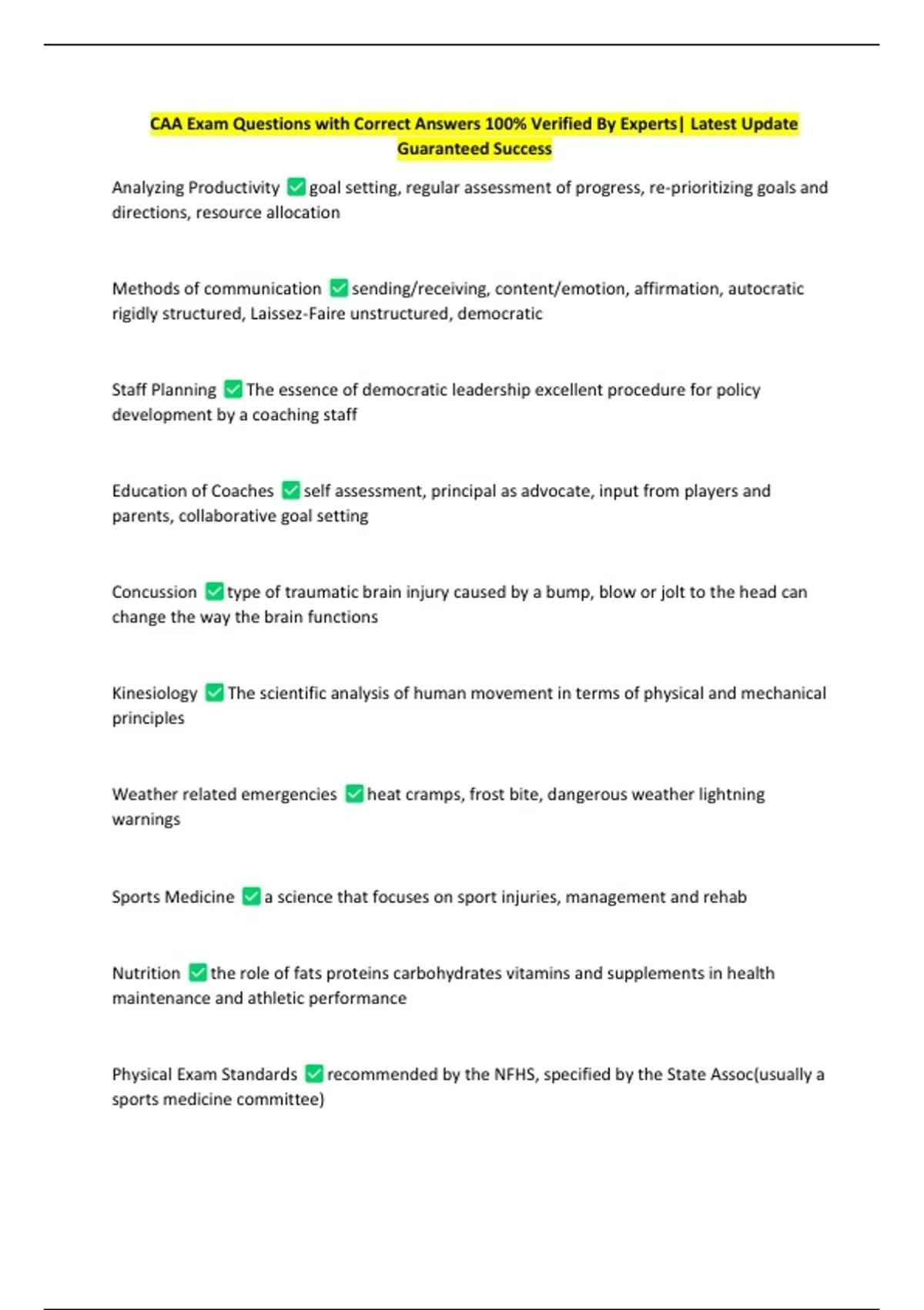 CAA Exam Questions with Correct Answers 100% Verified By Experts| Latest Update