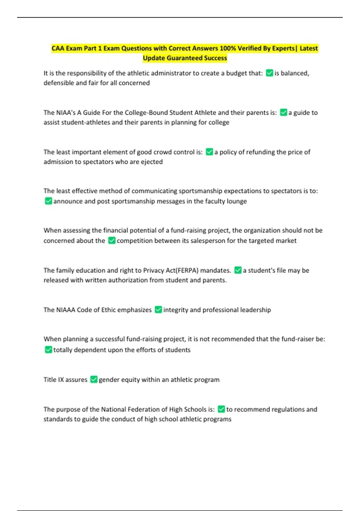 CAA Exam Part 1 Exam Questions with Correct Answers 100% Verified