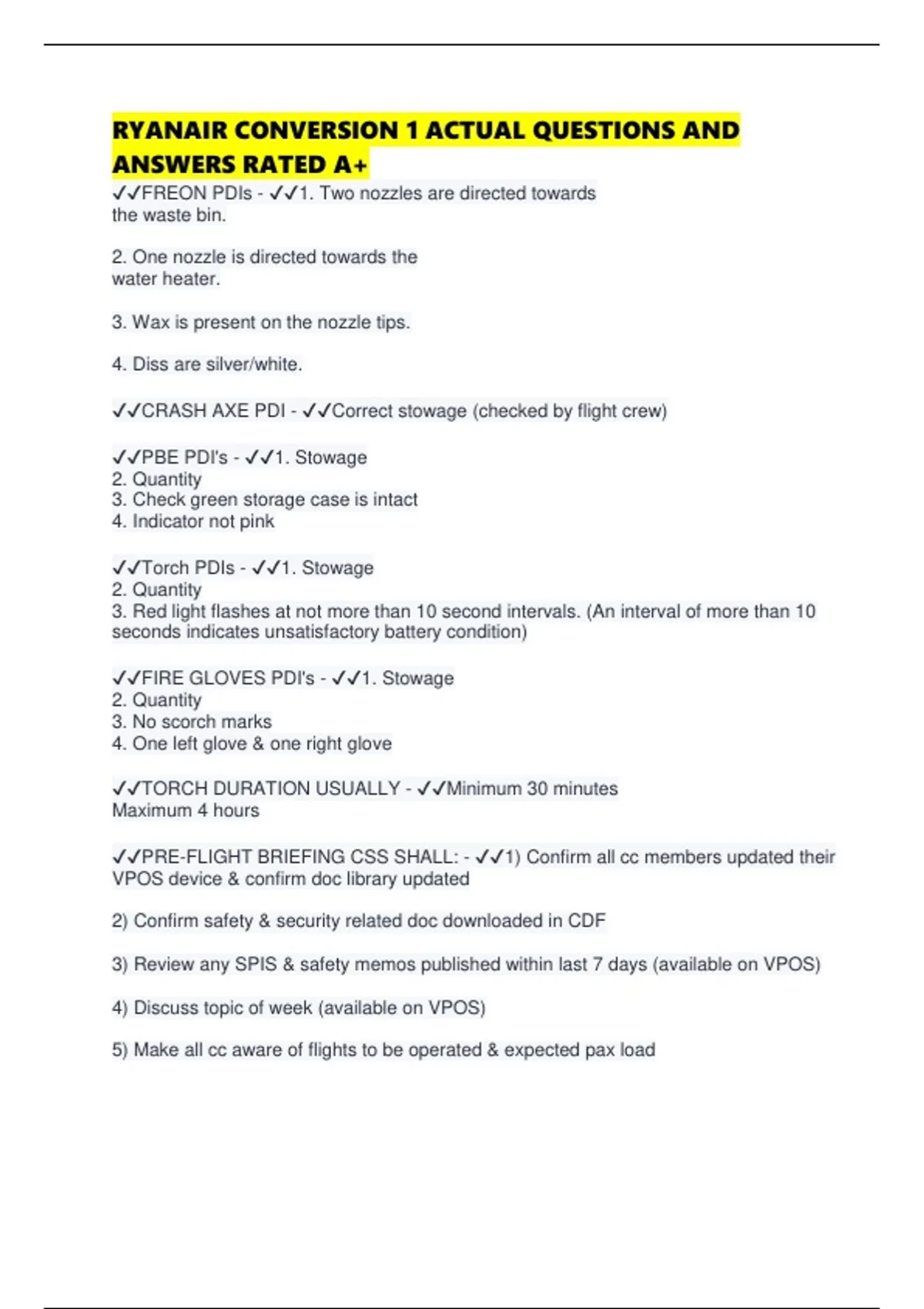 RYANAIR CONVERSION 1 ACTUAL QUESTIONS AND ANSWERS RATED A+