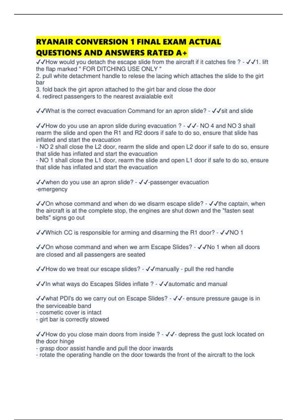 RYANAIR CONVERSION 1 FINAL EXAM ACTUAL QUESTIONS AND ANSWERS RATED A+