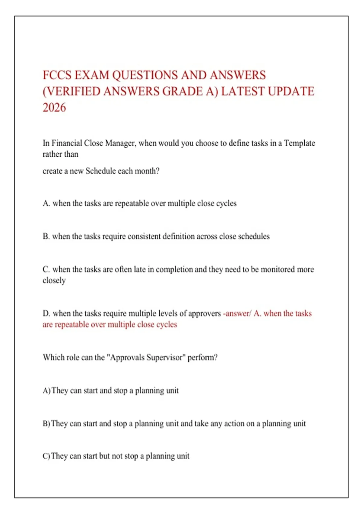 FCCS EXAM QUESTIONS AND ANSWERS (VERIFIED ANSWERS GRADE A) LATEST UPDATE 2026