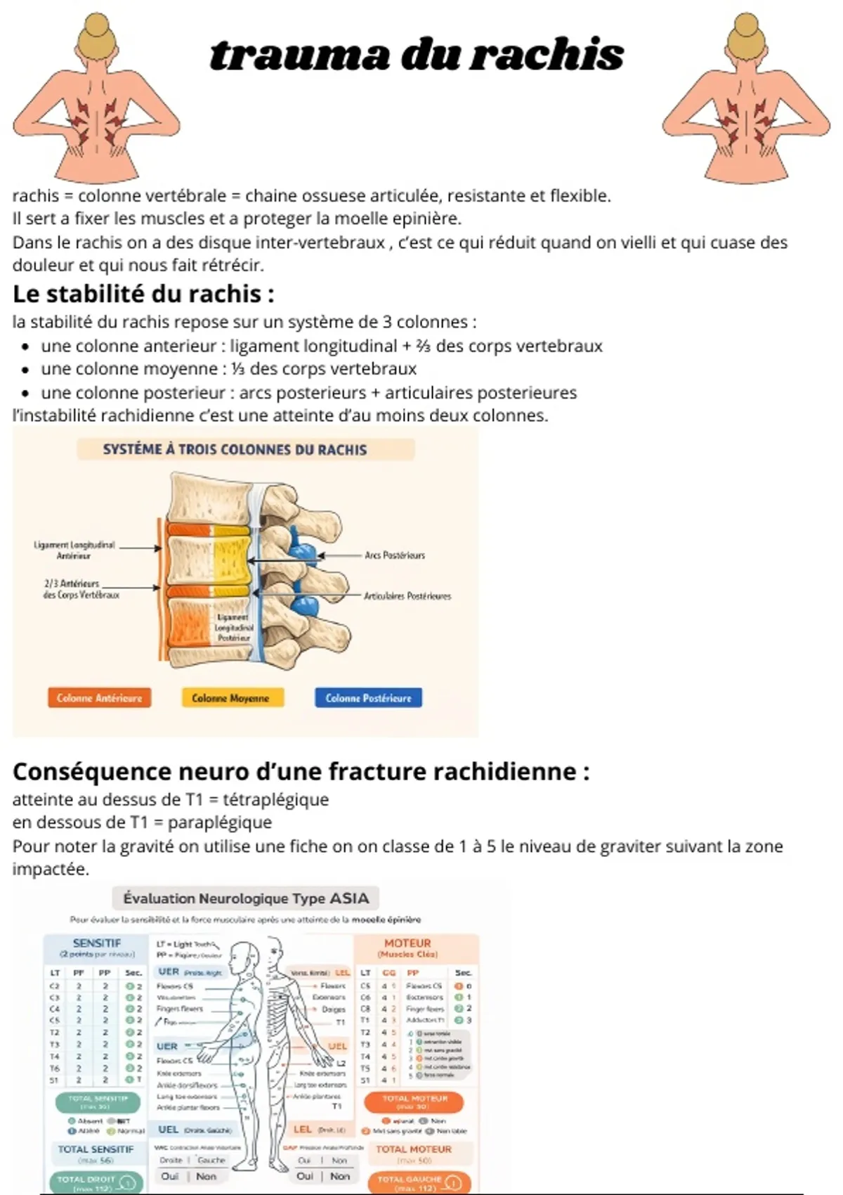 fiche complète sur le traumatisme du rachis. UE 2.4 S1