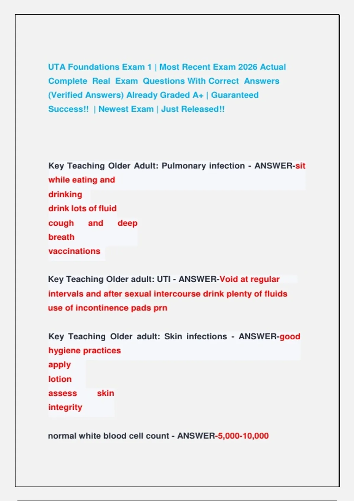 UTA Foundations Exam 1 | Most Recent Exam 2026 Actual Complete Real Exam Questions With Correct Answers (Verified Answers) Already Graded A+ | Guaranteed Success!! | Newest Exam | Just Released!! UTA Foundations Exam 1 | Most Recent Exam 2026 Actual Complete Real Exam Questions With Correct Answers (Verified Answers) Already Graded A+ | Guaranteed Success!! | Newest Exam | Just Released!! UTA Foundations Exam 1 | Most Recent Exam 2026 Actual Complete Real Exam Questions With Correct Answers (Verified Answers) Already Graded A+ | Guaranteed Success!! | Newest Exam | Just Released!! UTA Foundations Exam 1 | Most Recent Exam 2026 Actual Complete Real Exam Questions With Correct Answers (Verified Answers) Already Graded A+ | Guaranteed Success!! | Newest Exam | Just Released!! UTA Foundations Exam 1 | Most Recent Exam 2026 Actual Complete Real Exam Questions With Correct Answers (Verified Answers) Already Graded A+ | Guaranteed Success!! | Newest Exam | Just Released!!