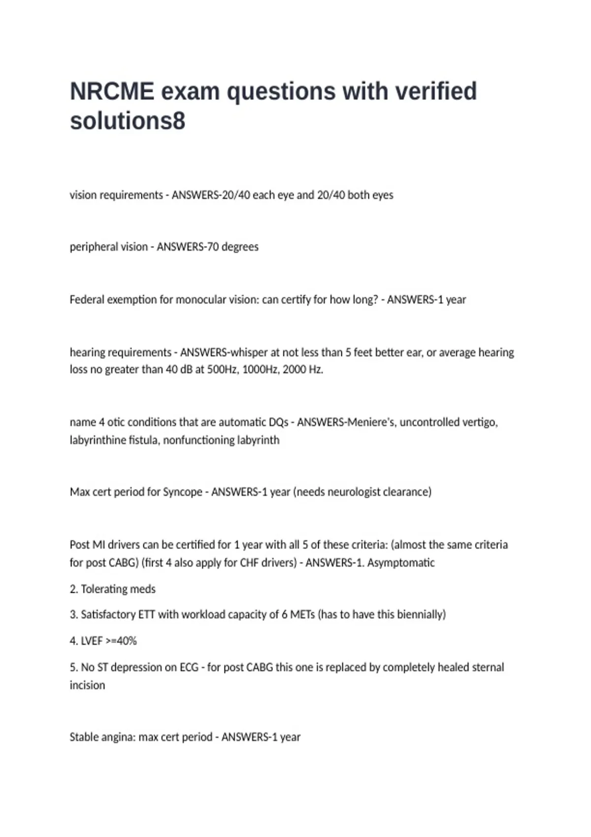 NRCME exam questions with verified solutions