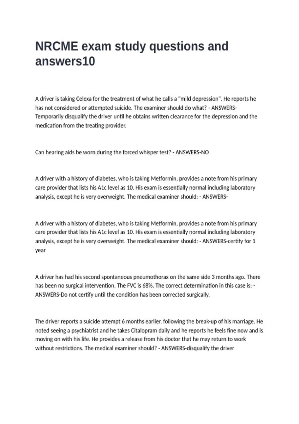 NRCME exam study questions and answers