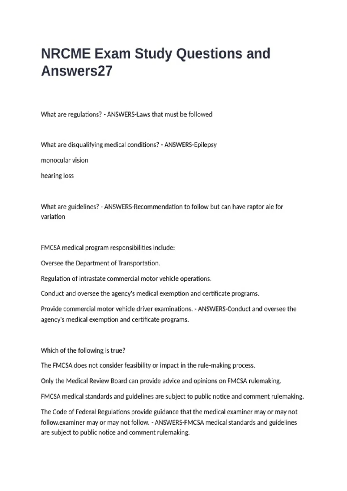 NRCME Exam Study Questions and