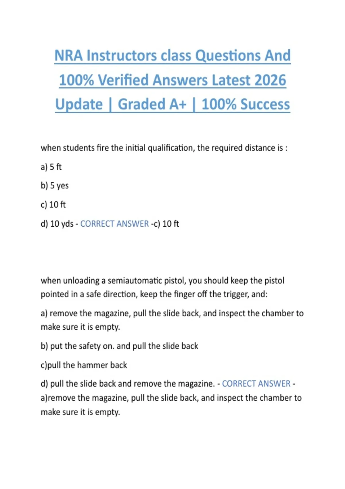 NRA Instructors class Questions And 100% Verified Answers Latest 2026 Update | Graded A+ | 100% Success