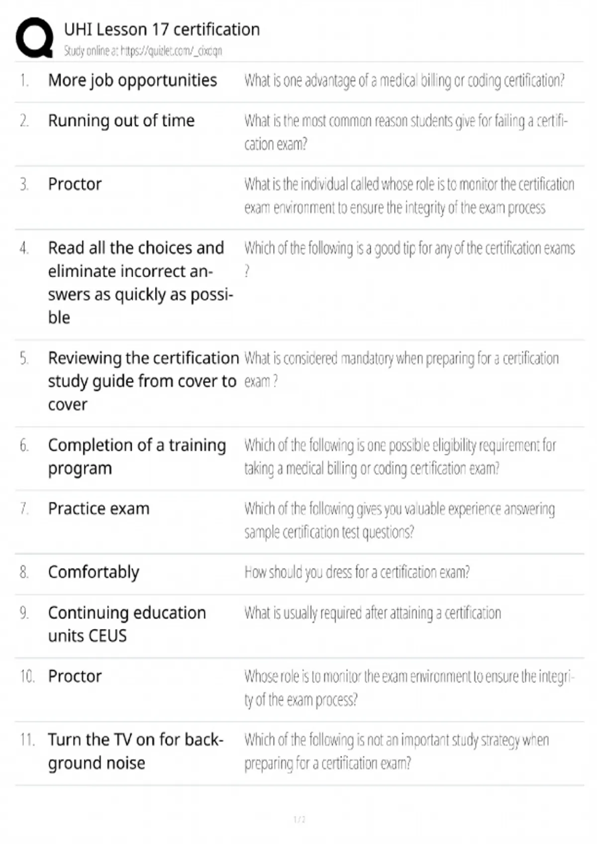 uhi study guide