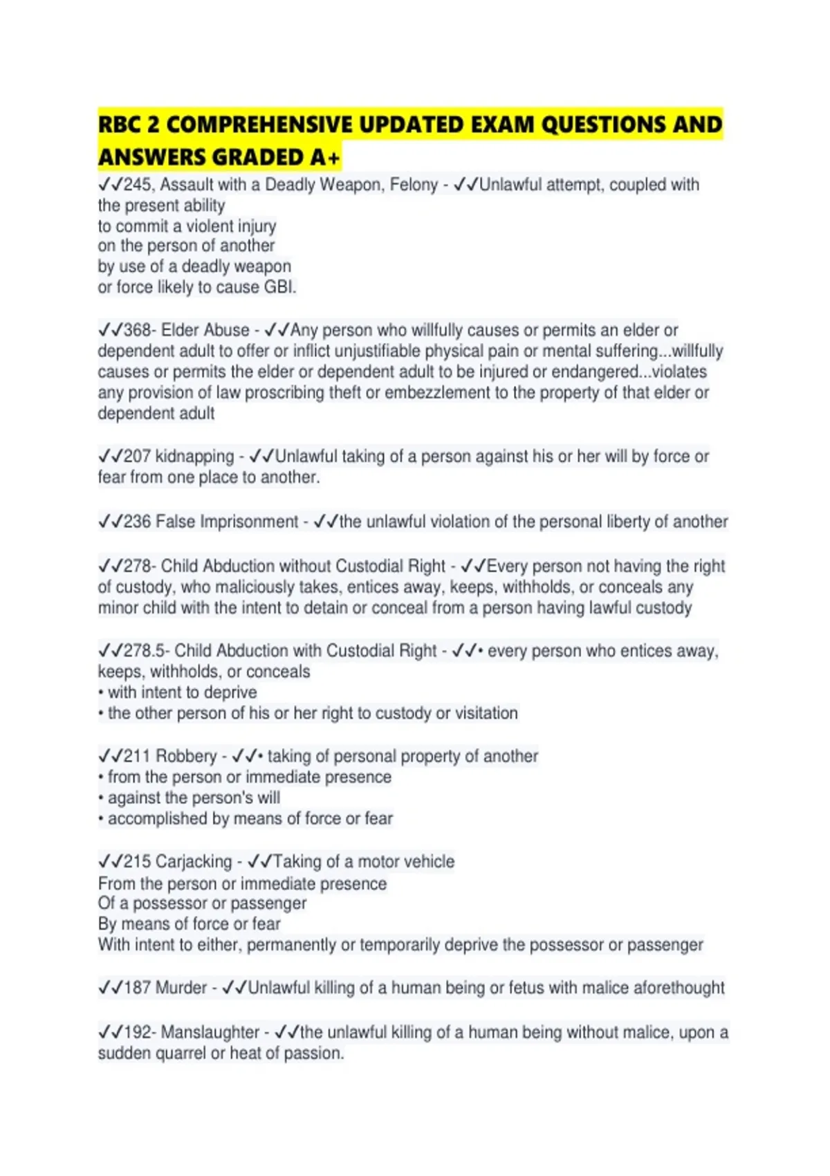 ✔✔211 Robbery - ✔✔• taking of personal property of another