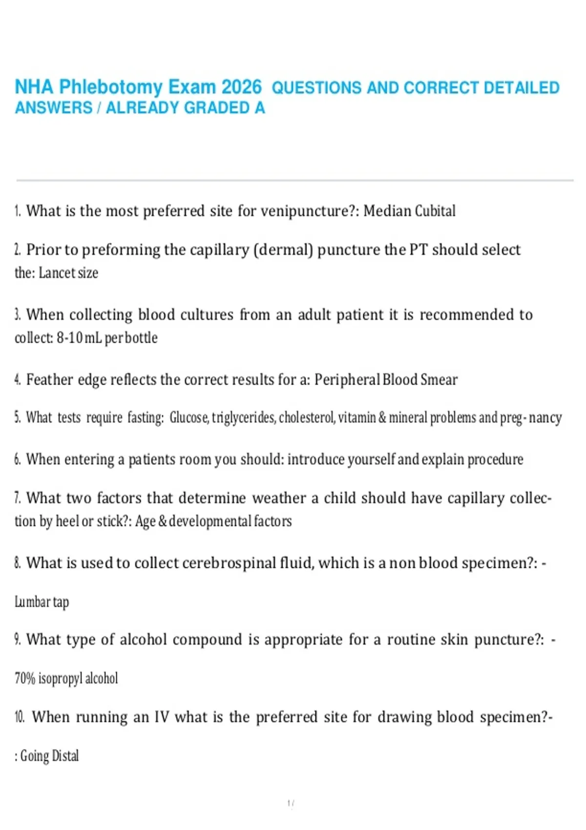 NHA Phlebotomy Exam 2026 QUESTIONS AND CORRECT DETAILED ANSWERS ALREADY GRADED A.pdf