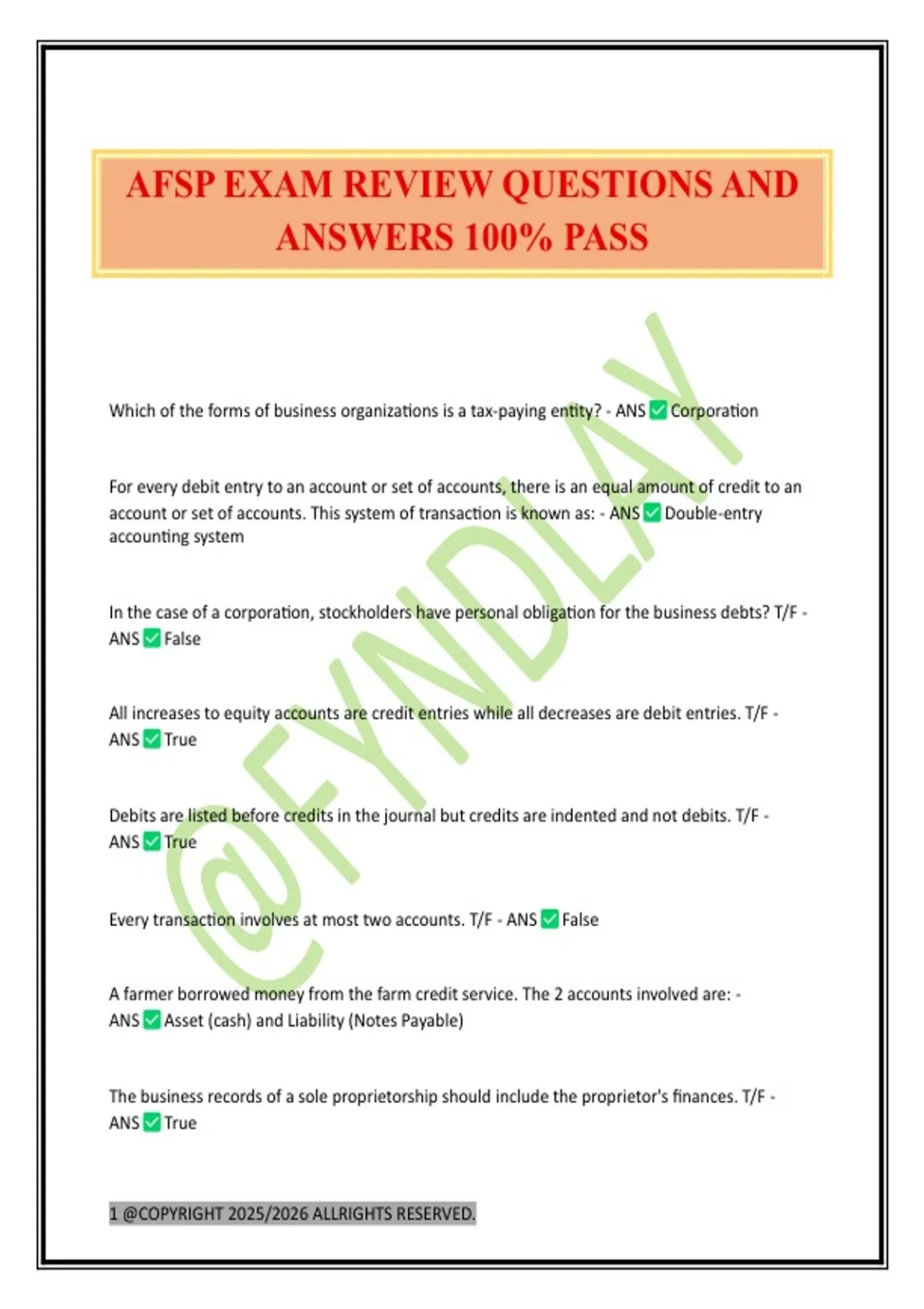 AFSP EXAM REVIEW QUESTIONS AND