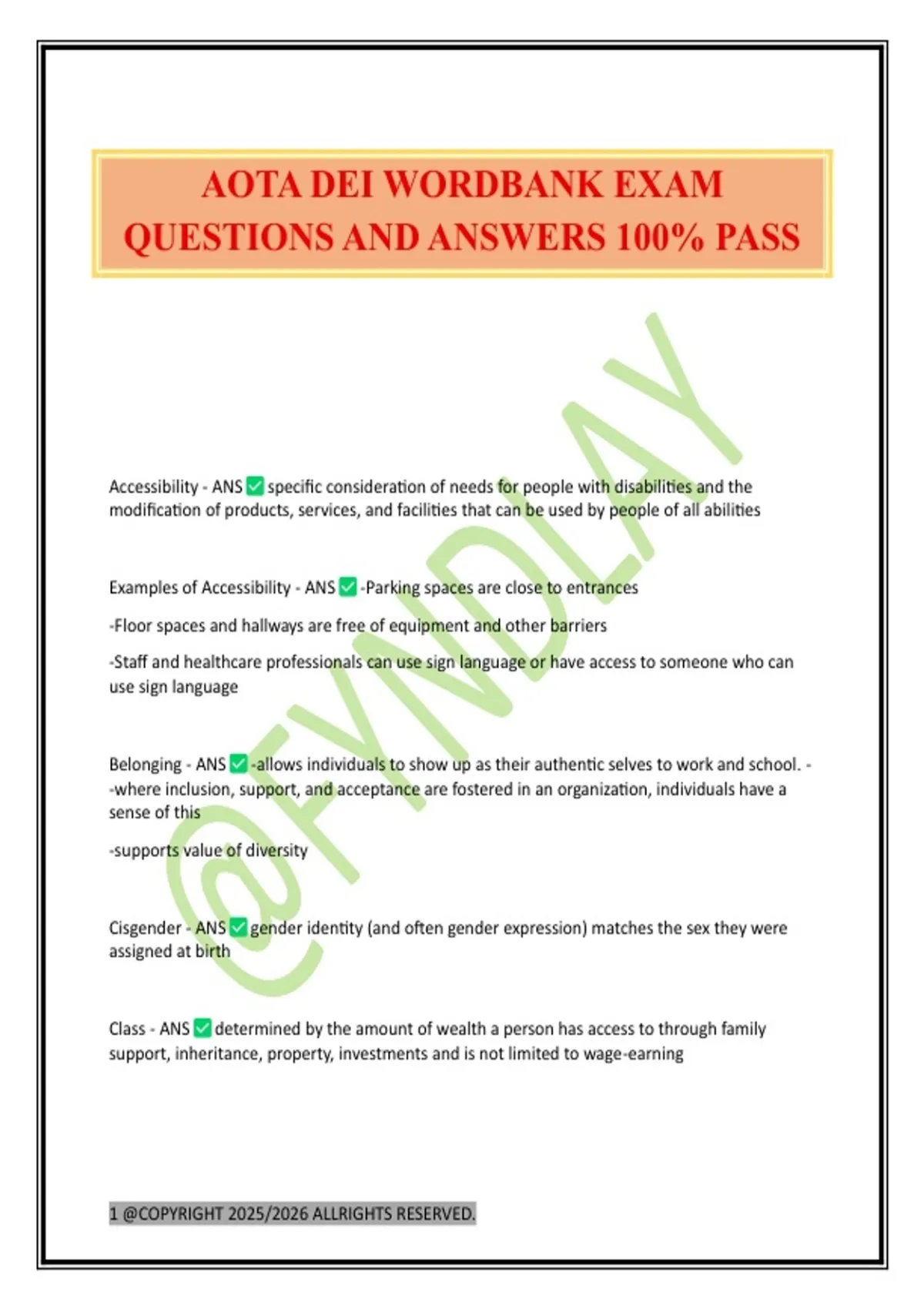 AOTA DEI WORDBANK EXAM QUESTIONS AND ANSWERS 100% PASS