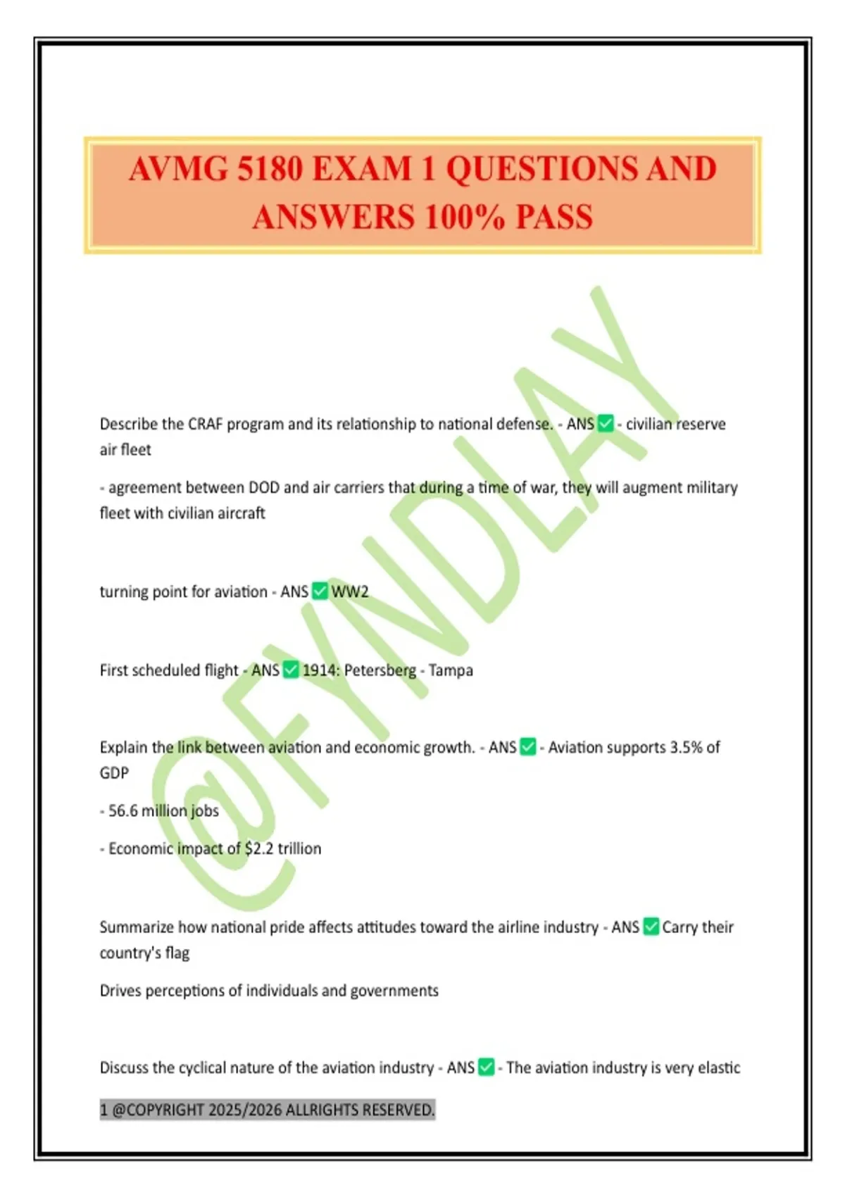 AVMG 5180 EXAM 1 QUESTIONS AND