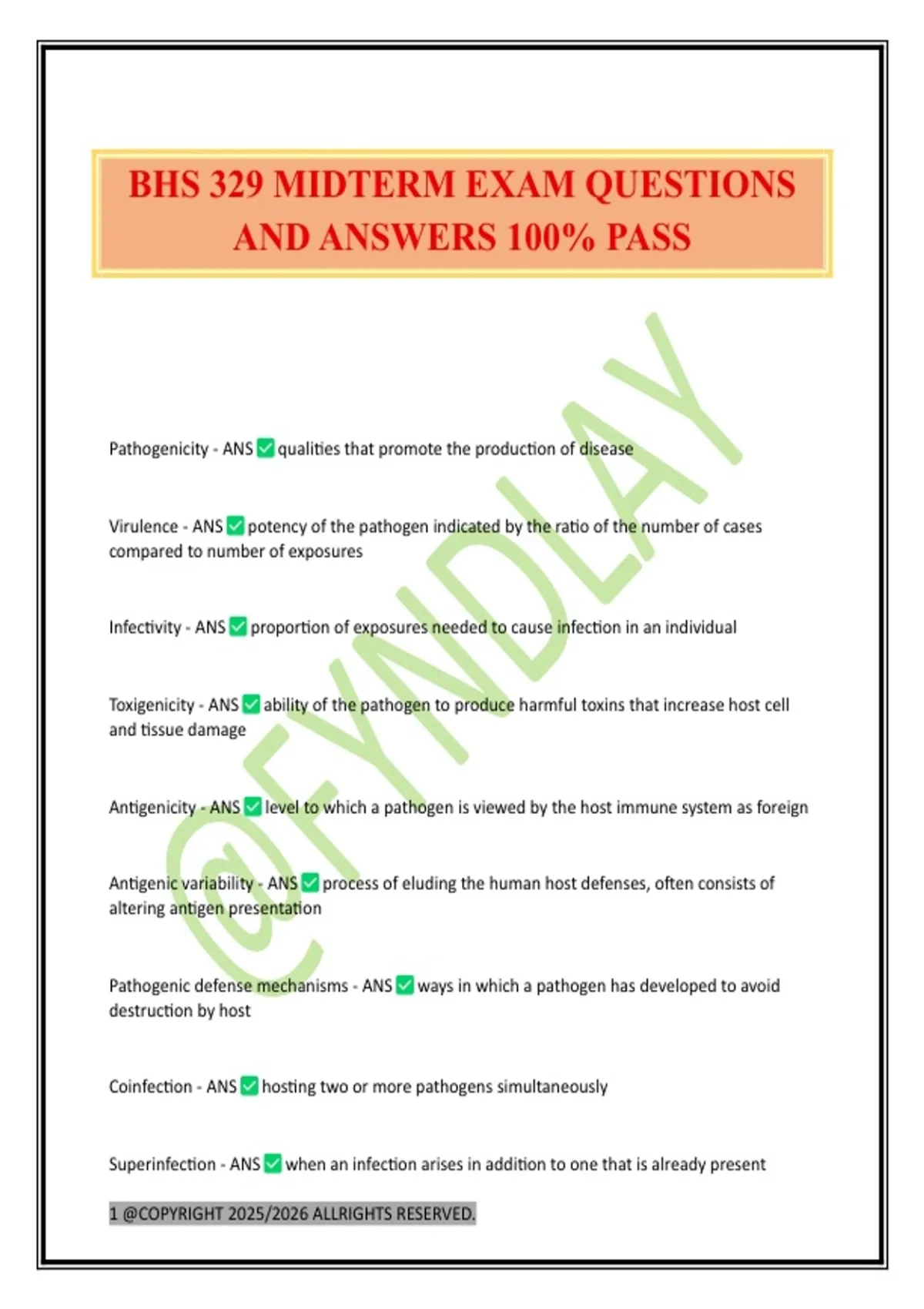 BHS 329 MIDTERM EXAM QUESTIONS AND ANSWERS 100% PASS