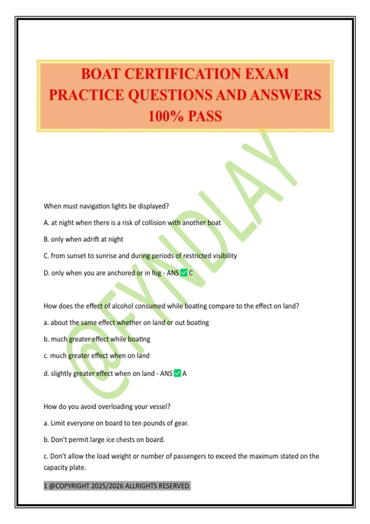 BOAT CERTIFICATION EXAM PRACTICE QUESTIONS AND ANSWERS 100% PASS
