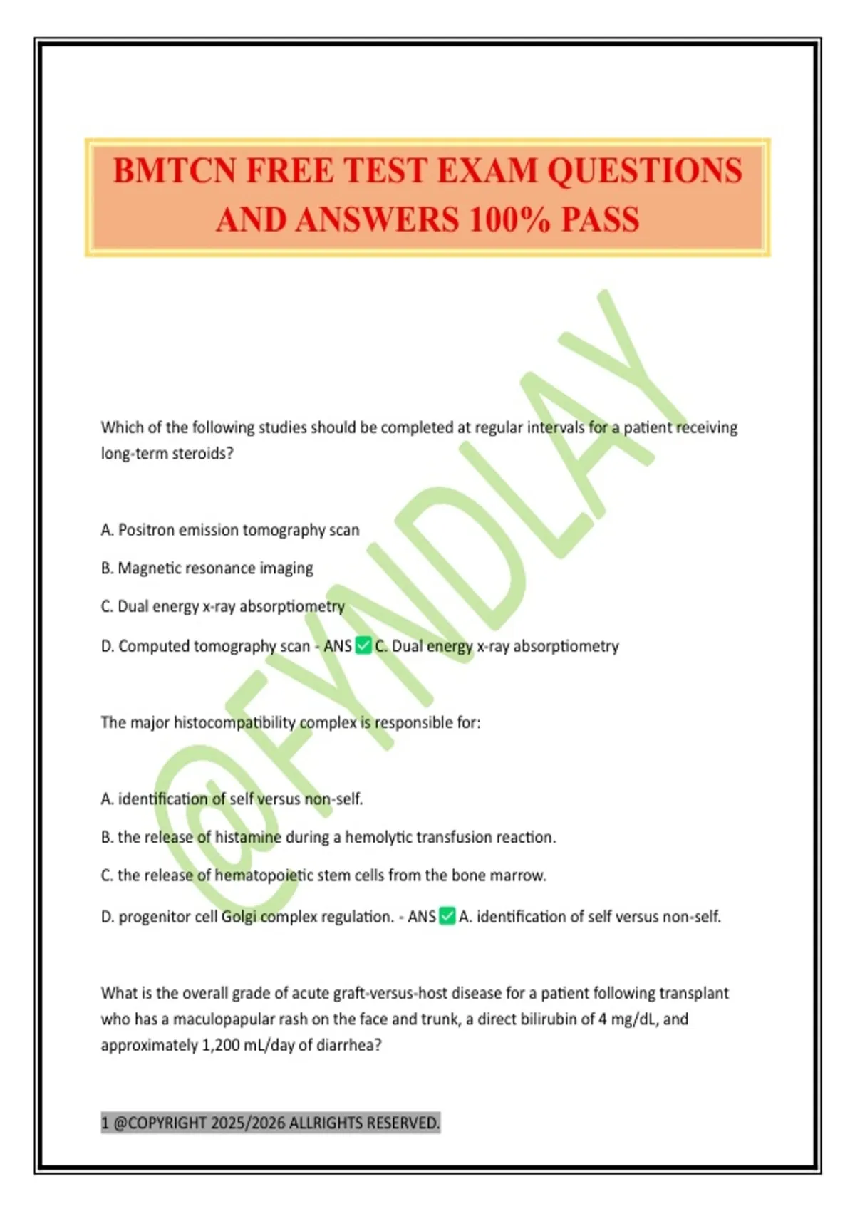 BMTCN FREE TEST EXAM QUESTIONS AND ANSWERS 100% PASS